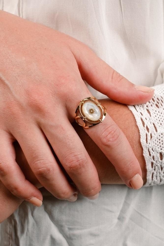 Cette jolie bague bohème et hippie ravira les amoureuses des bijoux originaux. Composée d’une pierre de nacre blanche et d’une étoile dorée, elle s’accordera à merveille avec une tenue de soirée, pour un mariage ou un évènement particulier.