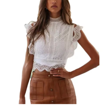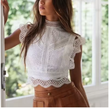 Avec cette blouse sans manche en blanc aux détails soignés, vous serez à la mode cet été. Son style bohème est sublimé par la dentelle qui couvre toute la robe, ainsi que les petits volants et dentelle délicate. La blouse peut s’associer avec une jupe ou un jean, ce qui vous offre une multitude de possibilités.