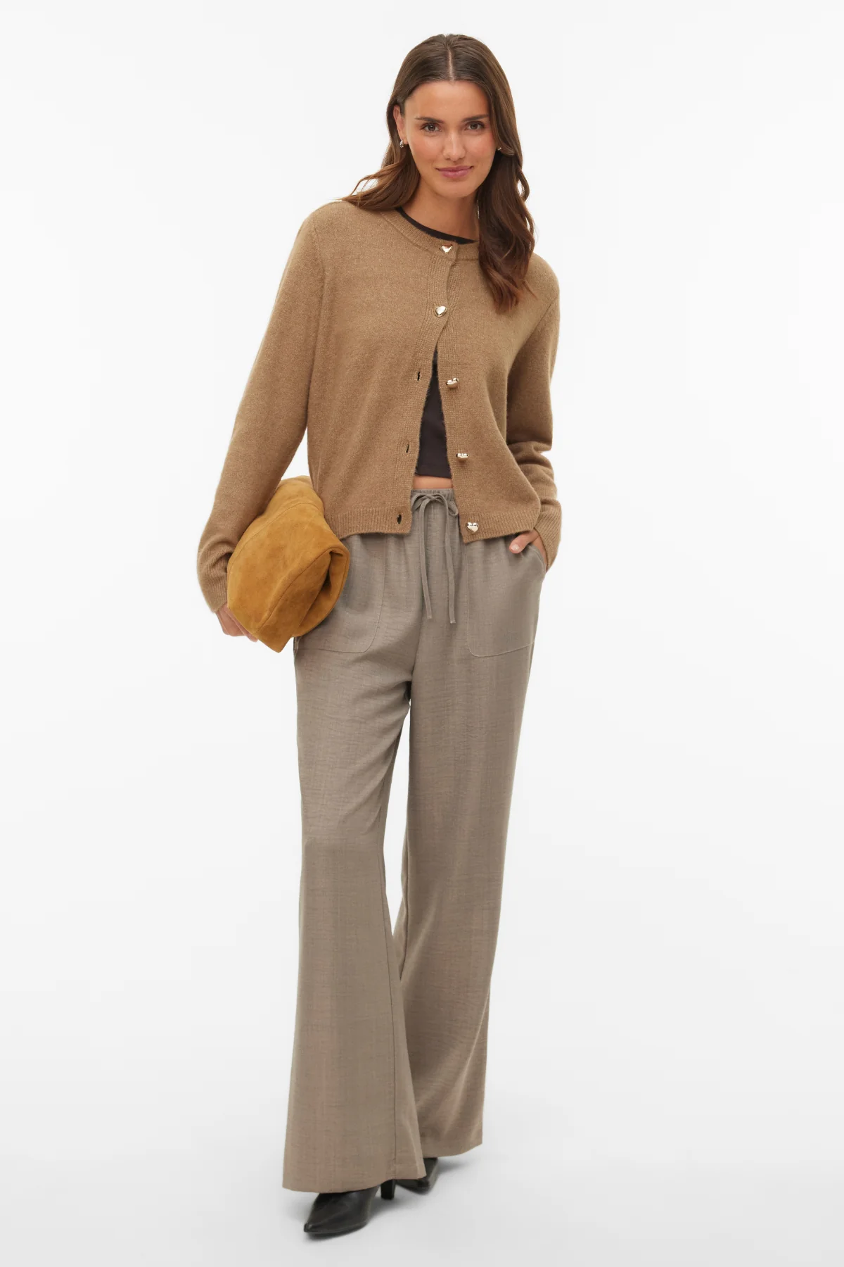 La beauté du Cardigan Fiona réside dans son design intemporel. La silhouette courte et légèrement raccourcie est incroyablement flatteuse, conçue pour s’adapter parfaitement à la taille avec un jean, une jupe ou un pantalon taille haute. La fermeture boutonnée classique sur le devant offre de multiples options de style : portez-la ouverte comme une veste légère, ou boutonnez-la et portez-la comme un haut sophistiqué. Libérez votre créativité et stylisez-la à votre façon. Pour un ensemble raffiné et prêt pour le bureau, superposez-le sur un caraco en soie et associez-le à une paire de chaussures habillées. Pants. Lors des journées plus fraîches, portez-le boutonné pour un look élégant sous l’un de nos vêtements structurés. Vestes. Pour une ambiance de week-end décontractée, enfilez-le simplement par-dessus votre t-shirt et votre jean préférés.