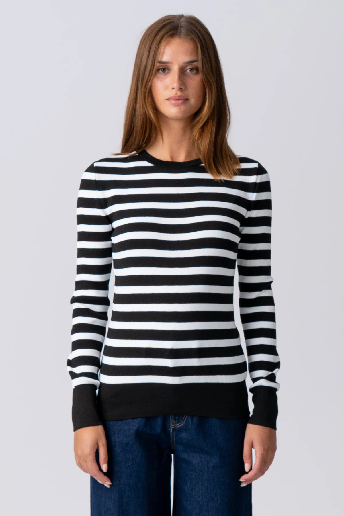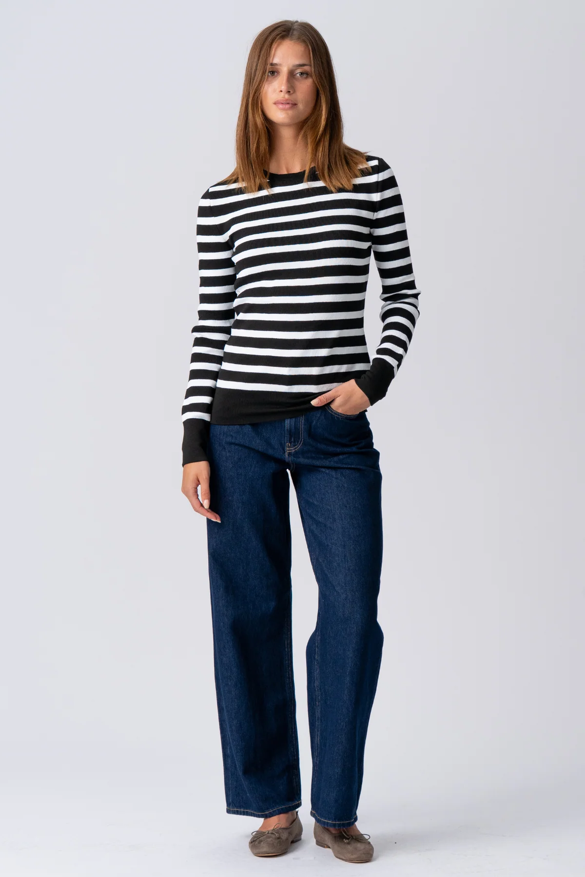 - Design rayé emblématique: Les rayures classiques en noir et blanc offrent un look sophistiqué et universellement flatteur qui ne se démode jamais. Les rayures peuvent créer un effet visuel minceur, améliorant magnifiquement votre silhouette.