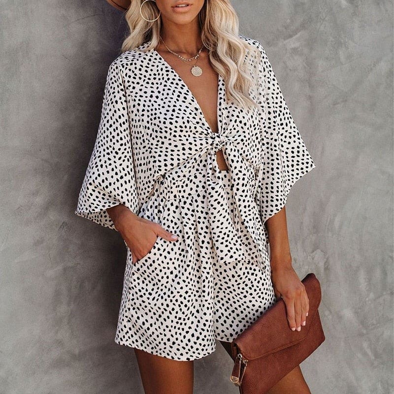Donnez à votre look une touche bohème chic avec cette combinaison tendance aux imprimés léopard. Cette tenue encolure en V est un must-have de la mode, idéale pour une soirée ou pour aller travailler. Son ajustement ample et court vous permettra de passer des heures à profiter du soleil sans chercher de l’ombre.