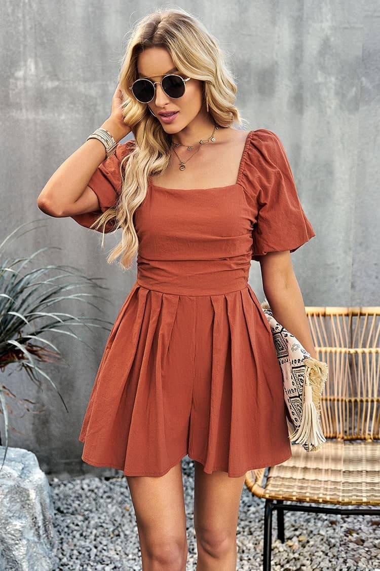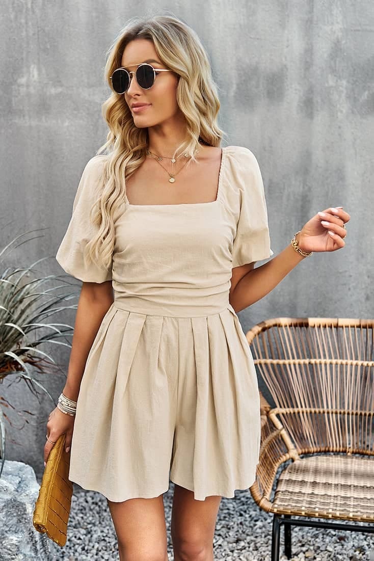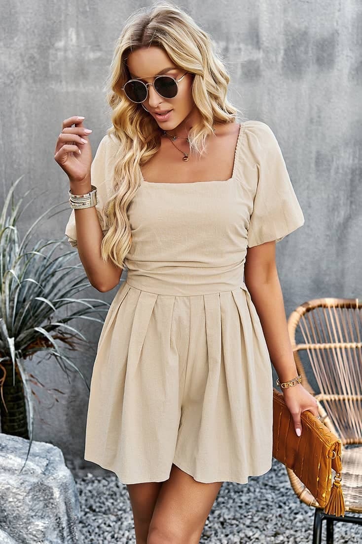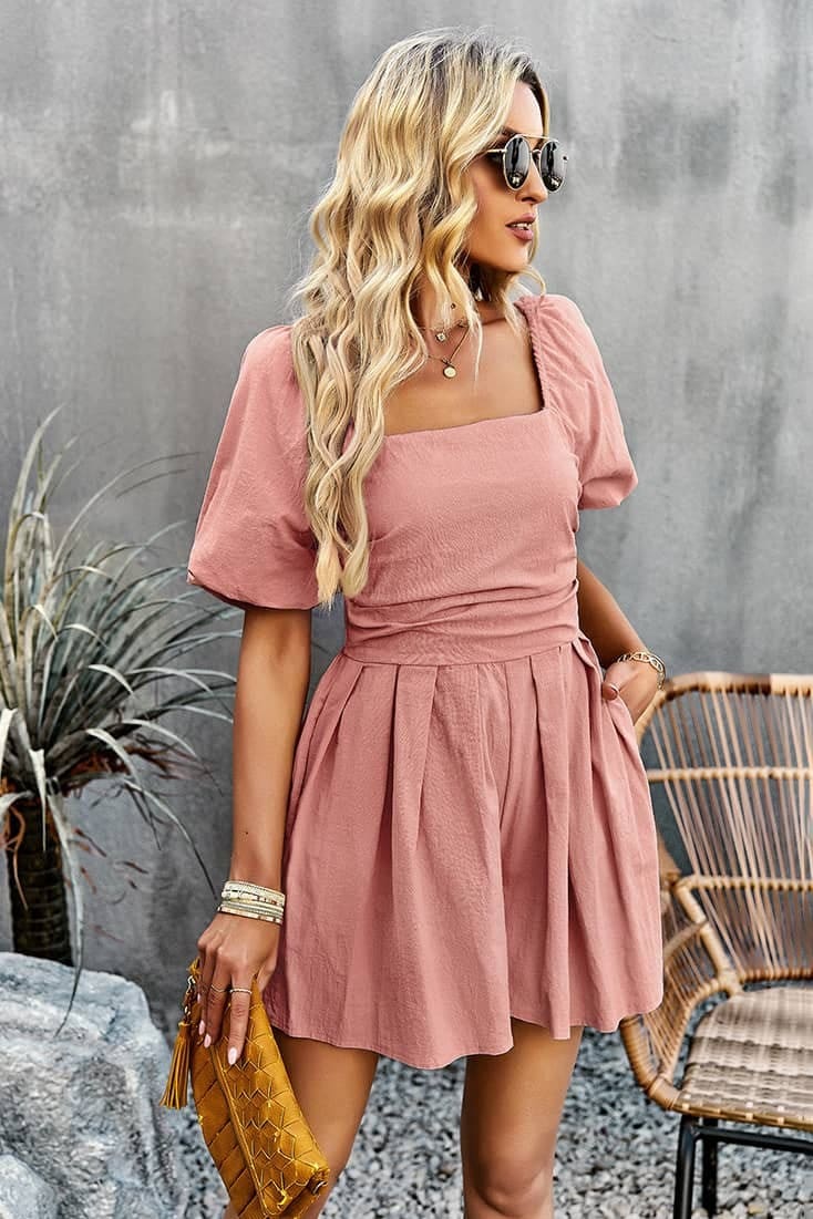 Short-combinaison Encolure carrée Manches à volants Dos froncé Couleurs : Rose, Beige et Orange Composition : Coton Une combinaison courte aux tons pastel pour un style chic et champêtre. Cette combishort avec sa coupe courte et ses couleurs pastel donnera à ta silhouette une allure chic et décontractée. Tendance et féminine, cette combinaison est faite […]