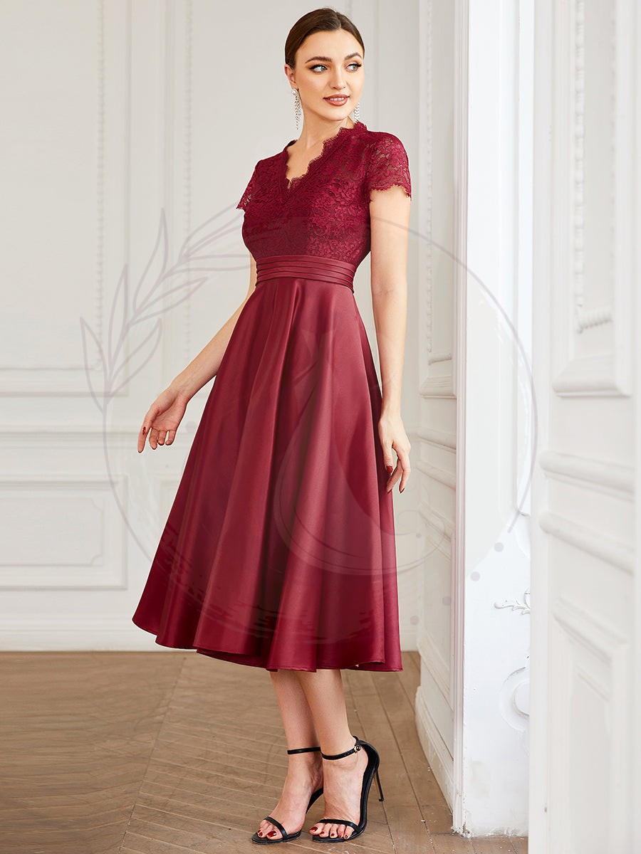 Élégante Robe mariage invitée mi-longue à manches courtes