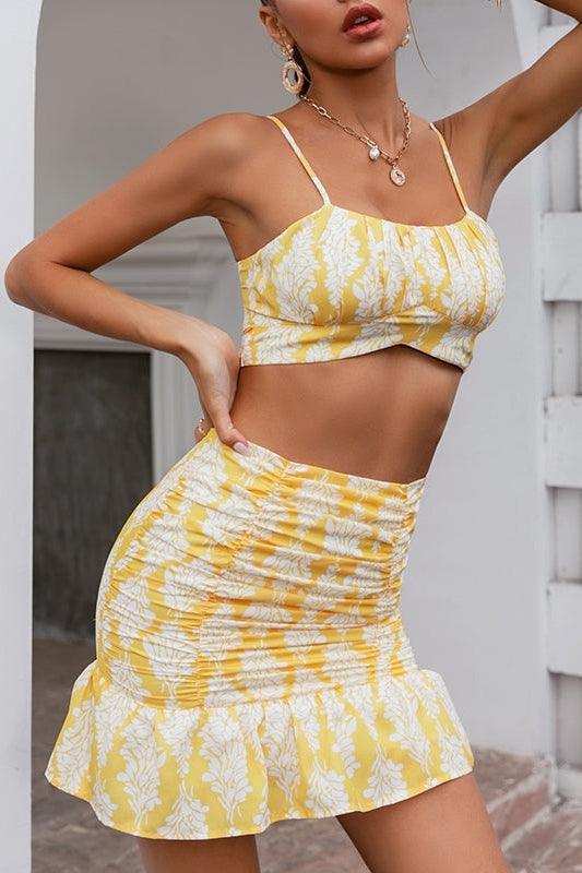 L’été est arrivé, et c’est le moment de se rendre à la mer ! Habillez-vous avec ce mignon ensemble jaune et soyez élégante en profitant des rayons du soleil sur le sable. Comprenant un haut dos nu et un short taille haute, ce modèle est fabriqué à partir d’un mélange de polyester et spandex offrant plus de souplesse et de confort. De plus, le matériau sèche rapidement, sans vous mouiller ou vous ensabler. Alors, saisissez cette tenue de plage avant votre prochain voyage et profitez du soleil!
