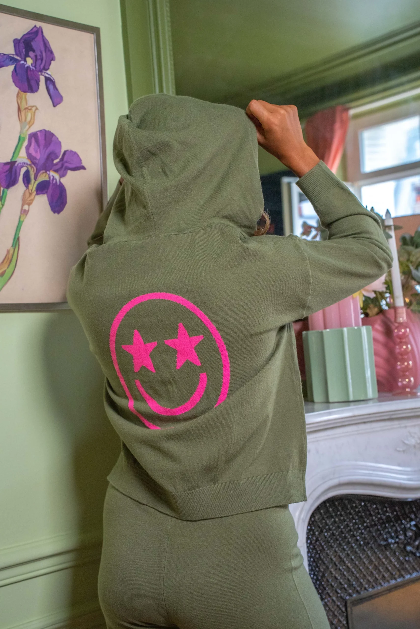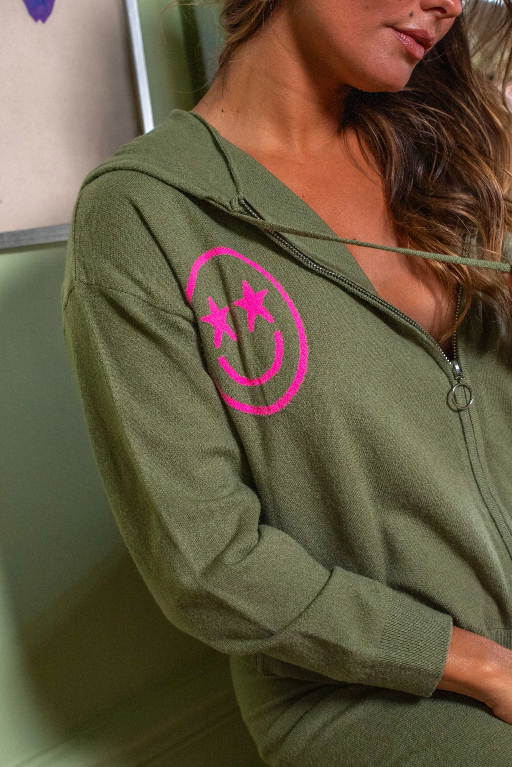 Sweat zippé à capuche en maille douce, idéal pour un look comfy et stylé. Son détail smiley sur la poitrine apporte une touche fun et originale. Facile à porter au quotidien, il se mixe aussi bien avec son pantalon assorti qu’avec un jean.