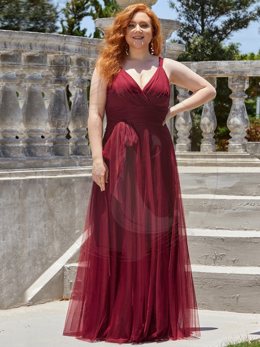 Grande taille Maxi long double col V Tulle Robes de mariée