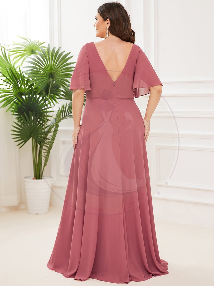 Grande taille Robe Mère de la Mariée Illusion Panneau Mousseline A-ligne
