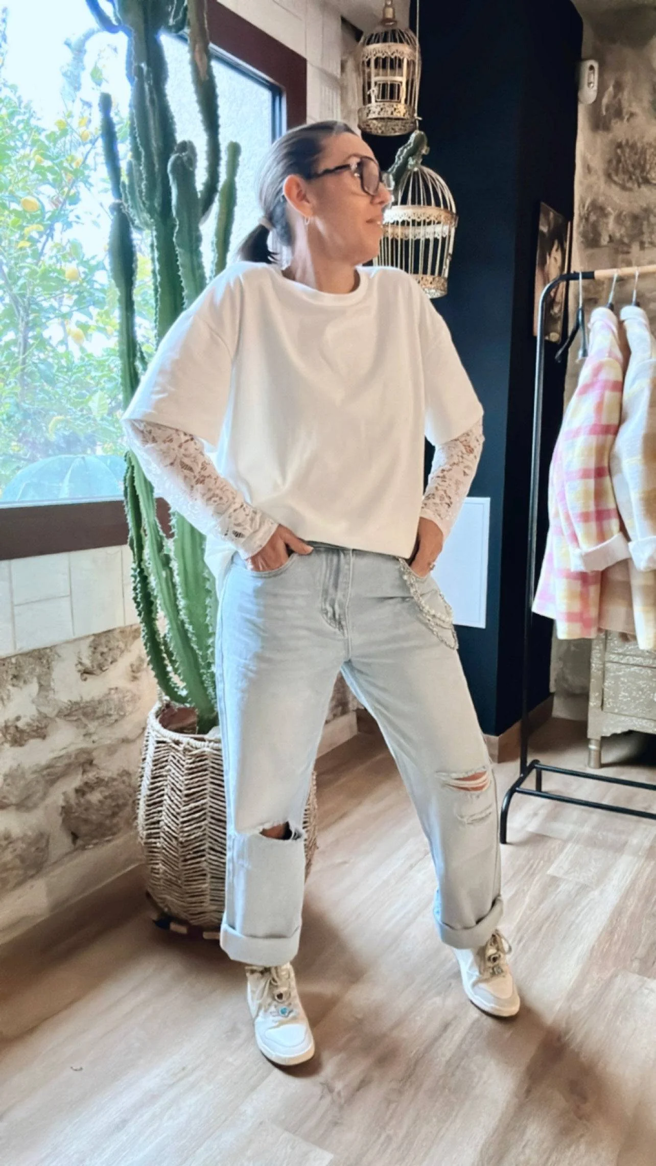 Un jean boyfriend déchiré polyvalent et ultra tendance : Le Jean Arthur est l’allié parfait pour un look casual chic. Sa coupe boyfriend offre une polyvalence sans égal : opte pour un style loose en prenant une taille au-dessus, ou un look plus ajusté en restant sur ta taille habituelle. Déchiré sur le devant, il apporte une touche rebelle et stylée, tandis que son bijou accroché au passant de ceinture ajoute une note d’élégance.