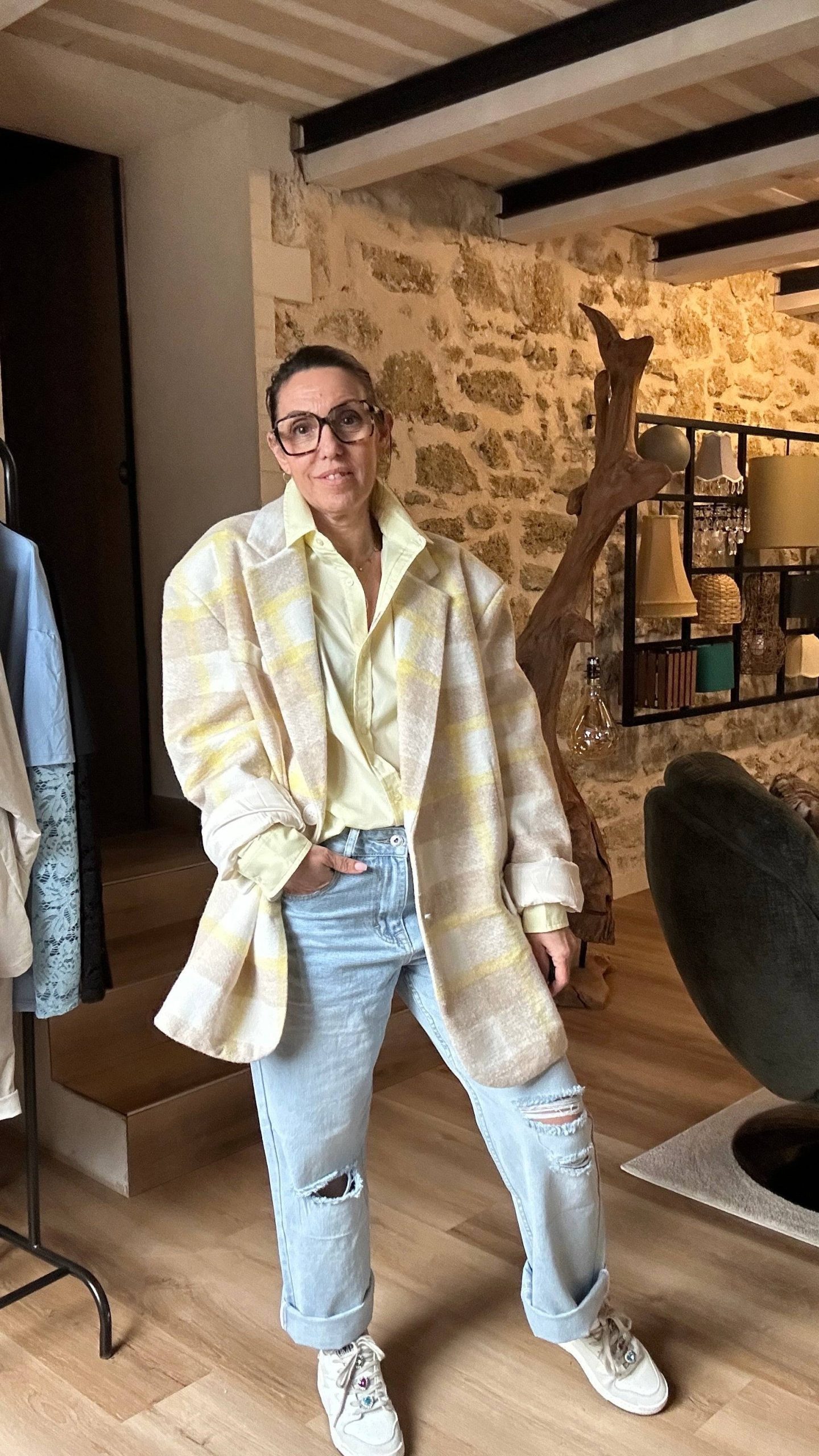 - Coupe : Boyfriend, taille haute, ajustable selon ton style.