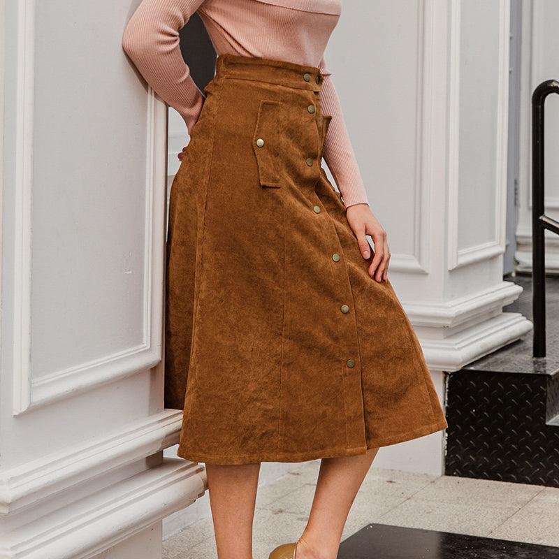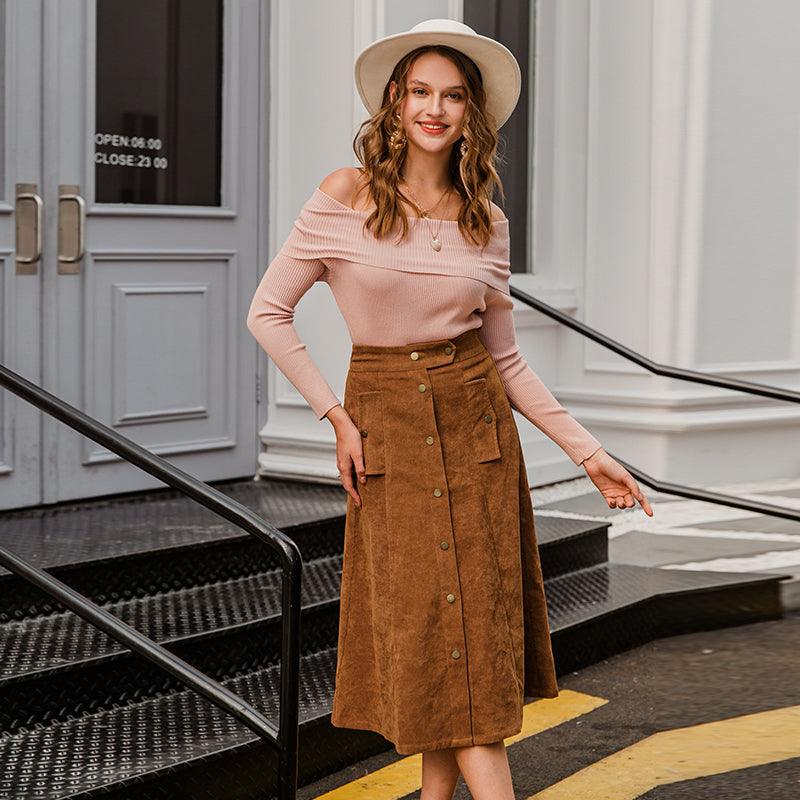 Cette jupe en velours côtelé doux et léger est tellement confortable et parfaite pour l’automne ! Sa coupe A-line lui confère un style flatteur pour toutes les silhouettes. Vous aimerez à coup sûr porter cette pièce vintage pendant toute la saison !
