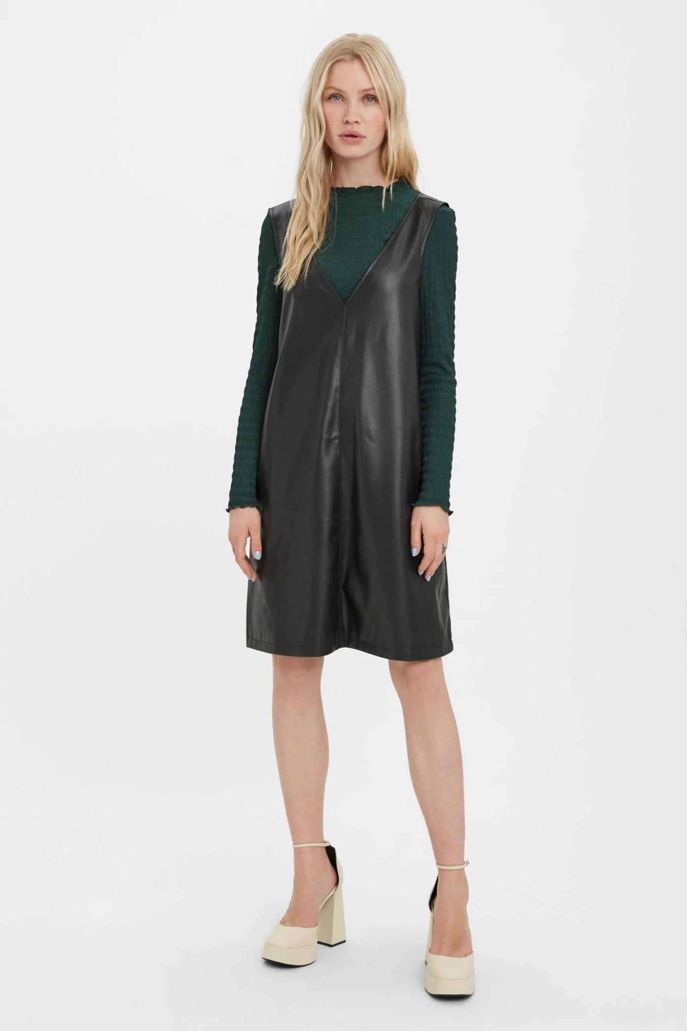TeeShoppenBella Coated Dress – Black : Sophistication élégante pour la femme moderne