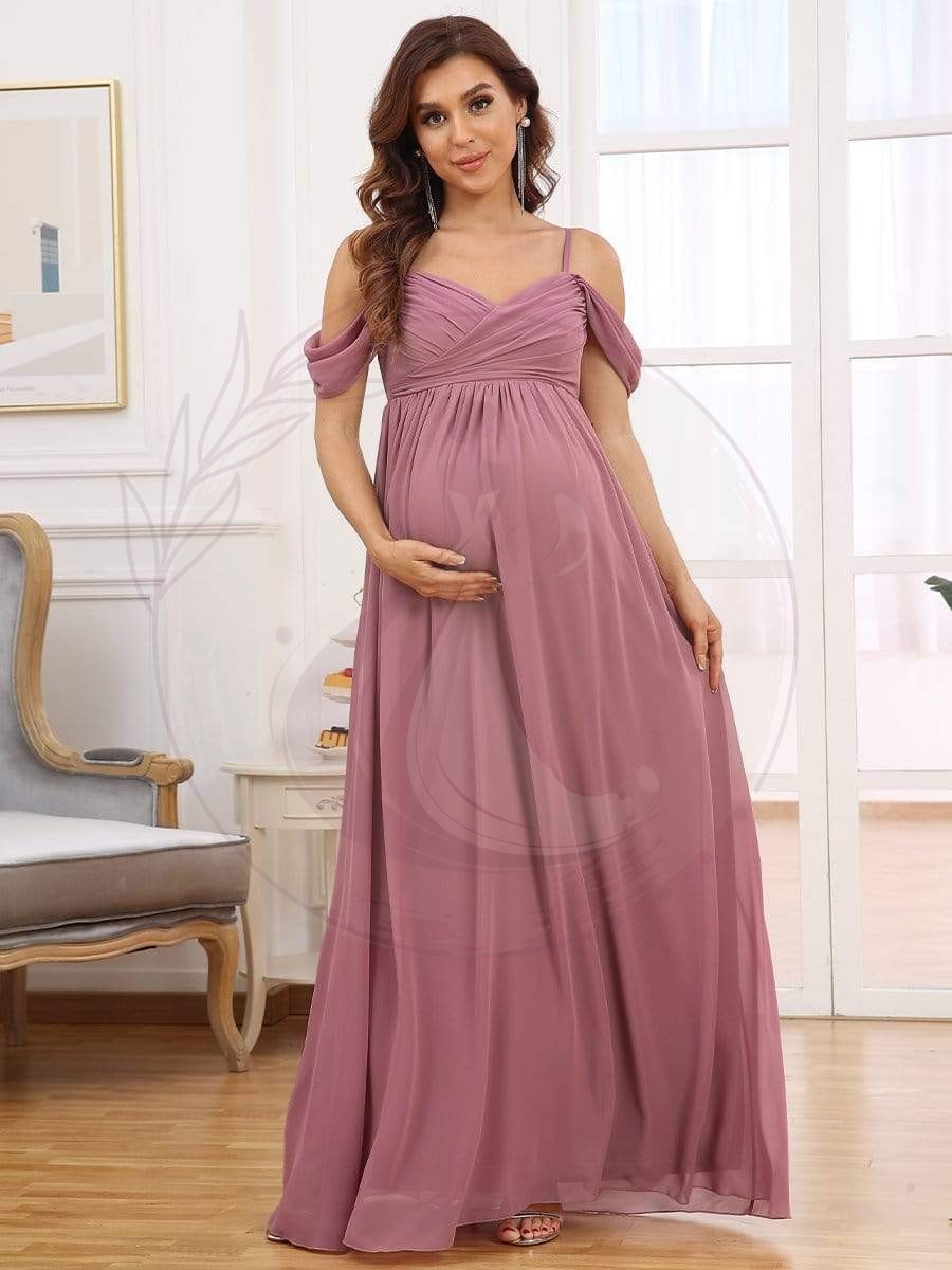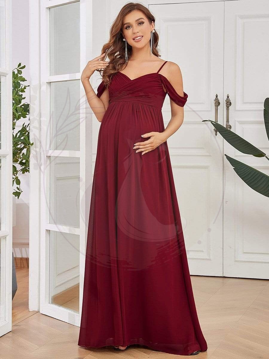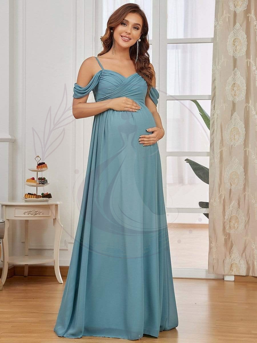 Maxi robe de maternité en tulle plissé à épaules dénudées