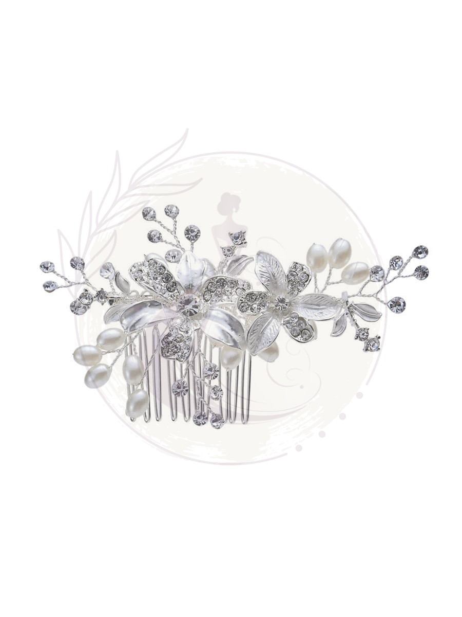 Apportez une élégance raffinée à chaque coiffure avec ce magnifique peigne à cheveux orné de strass et de perles confectionné à la main. Cet accessoire sophistiqué sublime toute tenue pour les grandes occasions, y compris les cérémonies de mariage, les soirées de bal et les événements de gala. Son design élaboré et le soin minutieux apporté aux détails font de ce peigne un bijou de cheveux qui traversera le temps avec grâce.