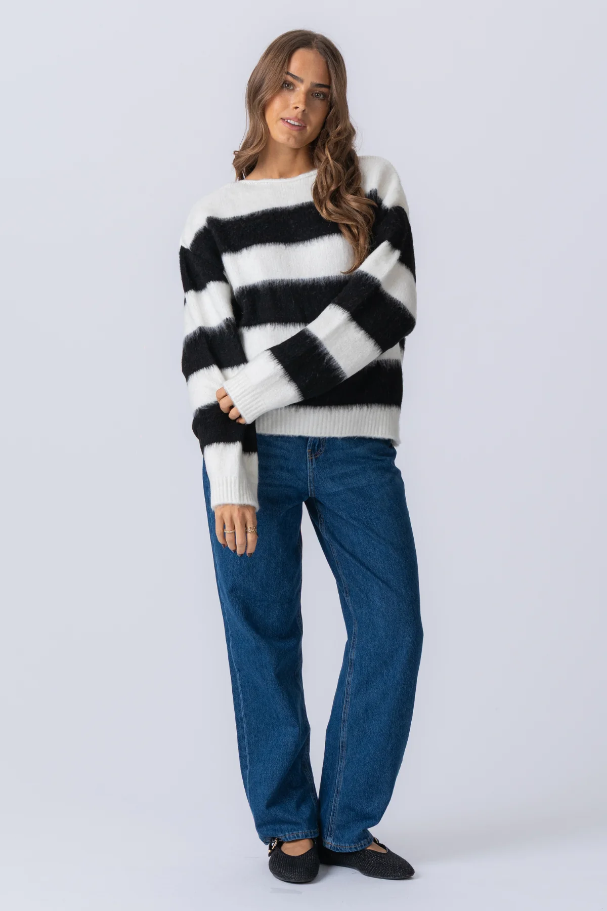 Pull tricoté à rayures Celina – blanc / noir