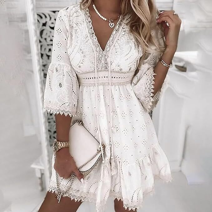 Vous cherchez cette pièce unique qui vous distinguera lors de votre prochain événement ? Essayez notre robe blanche champêtre ! Réalisée en dentelle fine, elle est parfaite pour les occasions où vous désirez avoir un look à la fois classique et moderne. Son style champêtre, mais toujours élégant, vous garantit une allure distinguée et unique lors de vos événements. Un véritable bijou vestimentaire qui ne manquera pas de mettre en valeur votre silhouette avec grâce !
