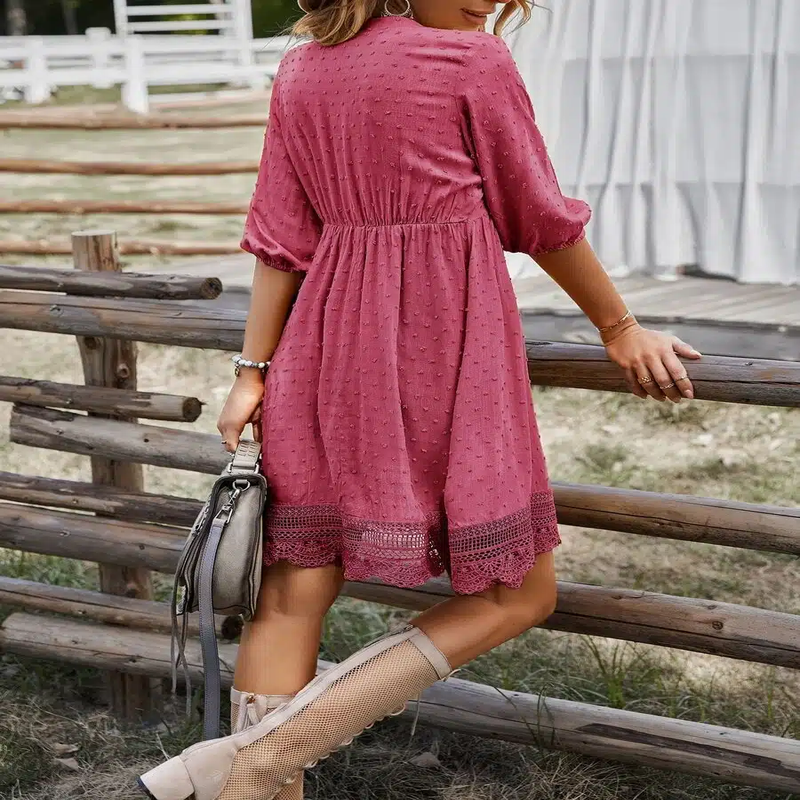 Robe champêtre à ourlet en dentelle rose