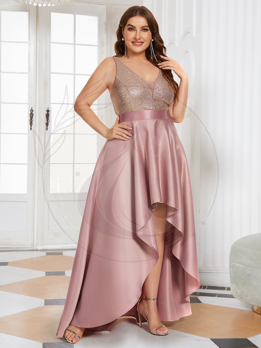 Robe de Bal Grande Taille Scintillante Sexy avec Dos Nu et Ourlet Irrégulier