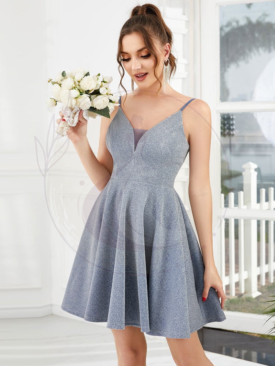 Robe de Cocktail Fantaisie Brillant Col En V Profond Au-dessus Du Genou