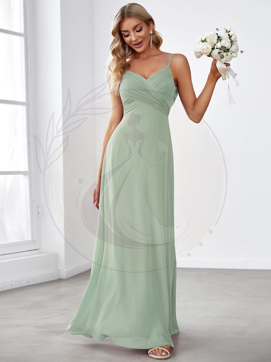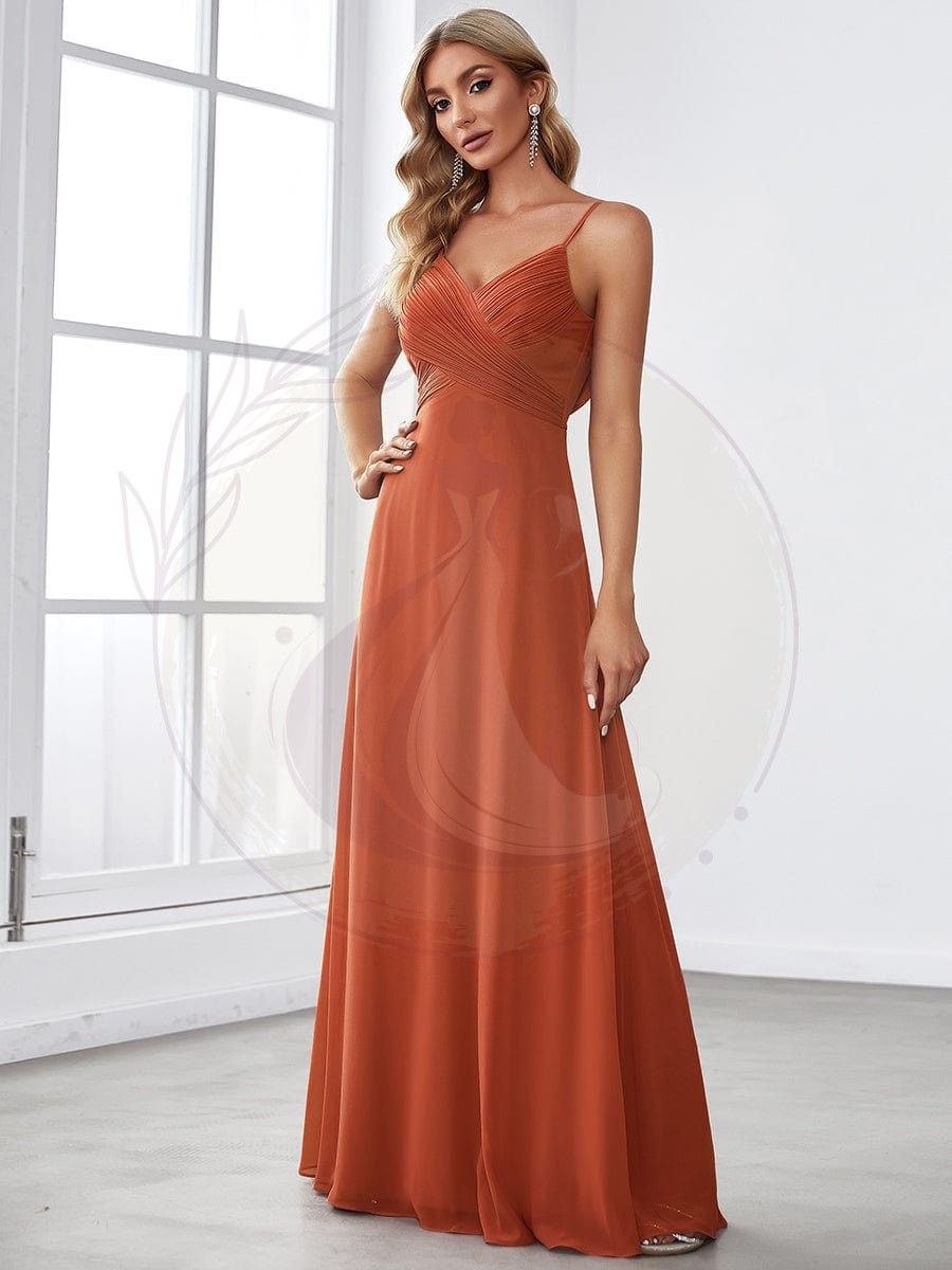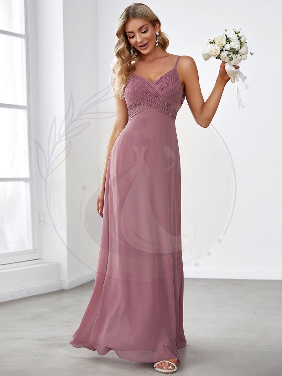 Cette magnifique robe pour accompagnatrice de mariée, à la fois raffinée et tendance, épouse harmonieusement toutes les silhouettes. Son tissu aérien et léger offre une liberté de mouvement idéale. Elle est pourvue d’un charmant buste en forme de cœur, soutenu par un dos échancré élégamment drapé, et se prolonge en une traîne captant l’élégance d’une soirée de fête.