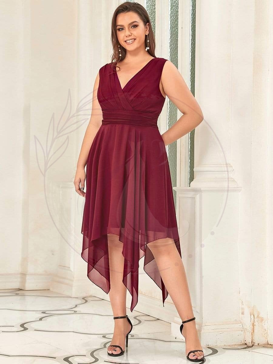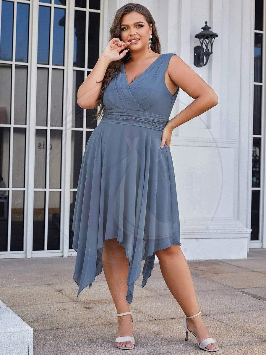 Robe de Demoiselle d’Honneur en Mousseline à Ourlet Asymétrique Longueur Genou de Grande Taille