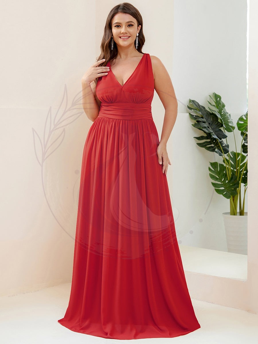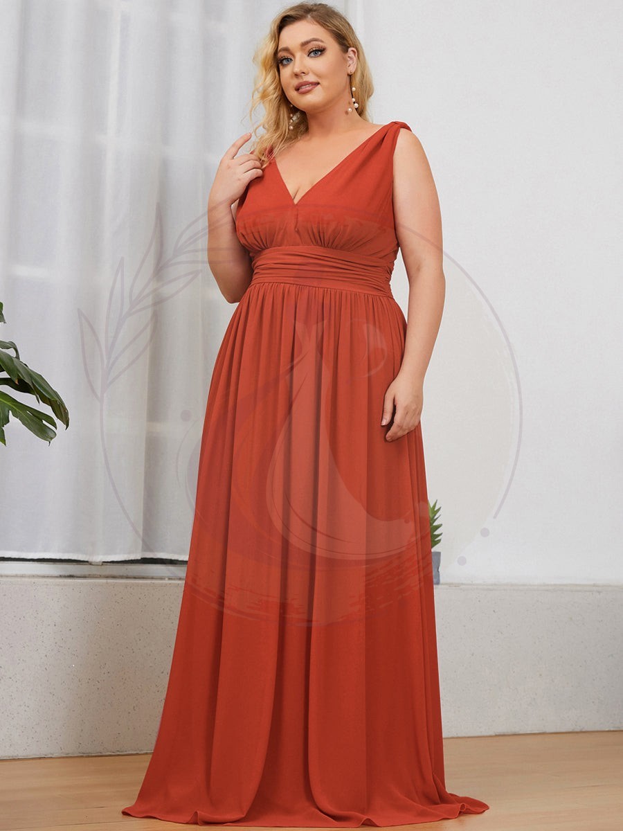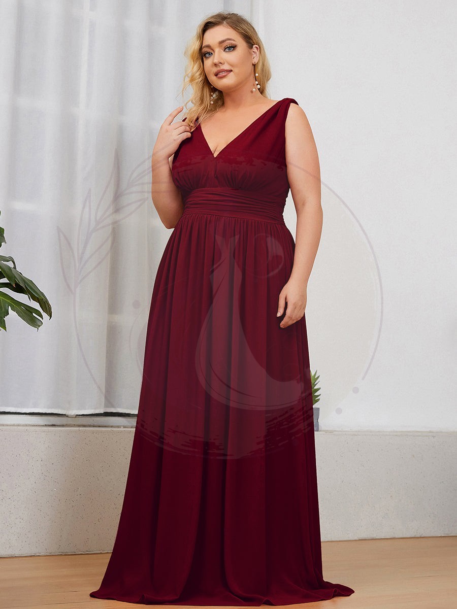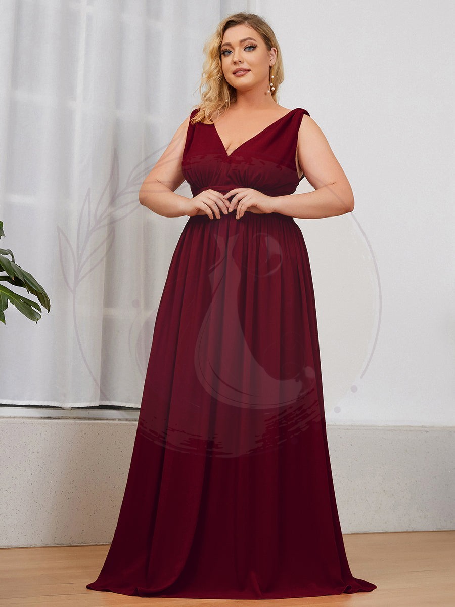 Robe de demoiselle d’honneur Grande Taille à Col V sans Manches