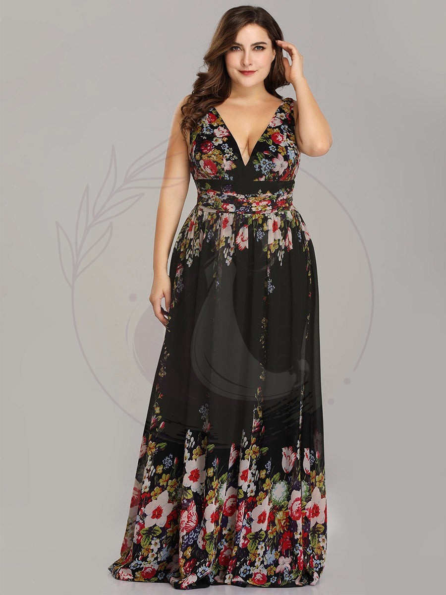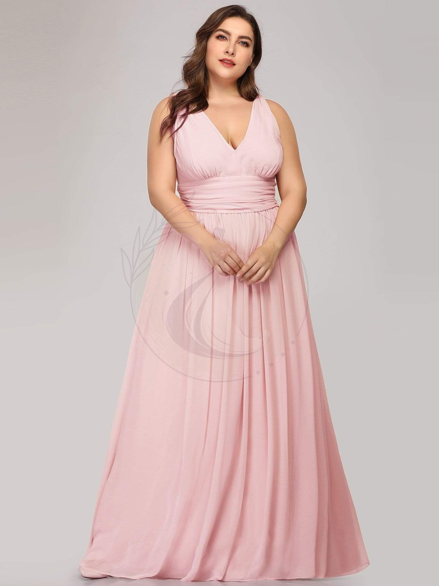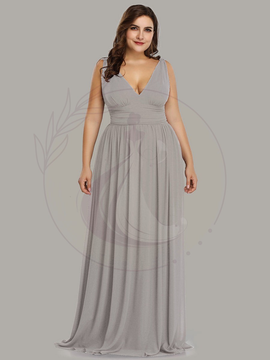 Robe de demoiselle d’honneur Grande Taille à Col V sans Manches
