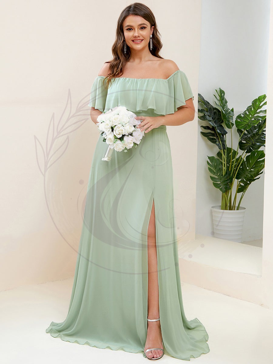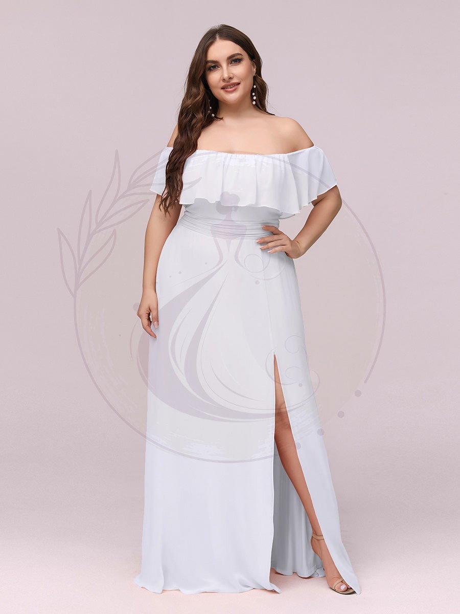 Soyez éblouissante en grandeur avec cette élégante robe pour demoiselle d’honneur conçue spécialement pour les silhouettes généreuses. Arborant un séduisant décolleté qui dévoile les épaules et une jupe élancée avec une ouverture suggestive sur la jambe, elle est l’atout charme pour toute cérémonie nuptiale, soirée de gala, événement festif, bal de graduation, accueil en grande pompe ou pour sublimer vos moments d’évasion en vacances.