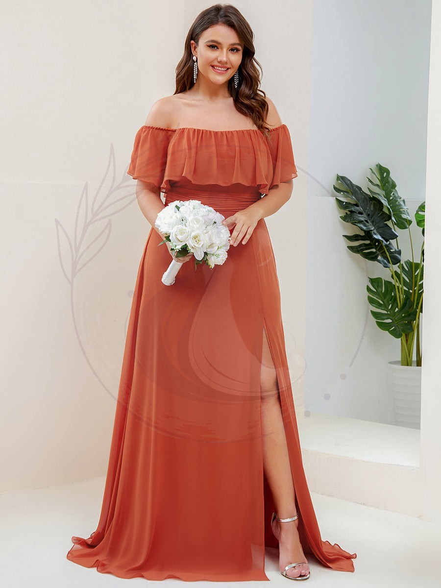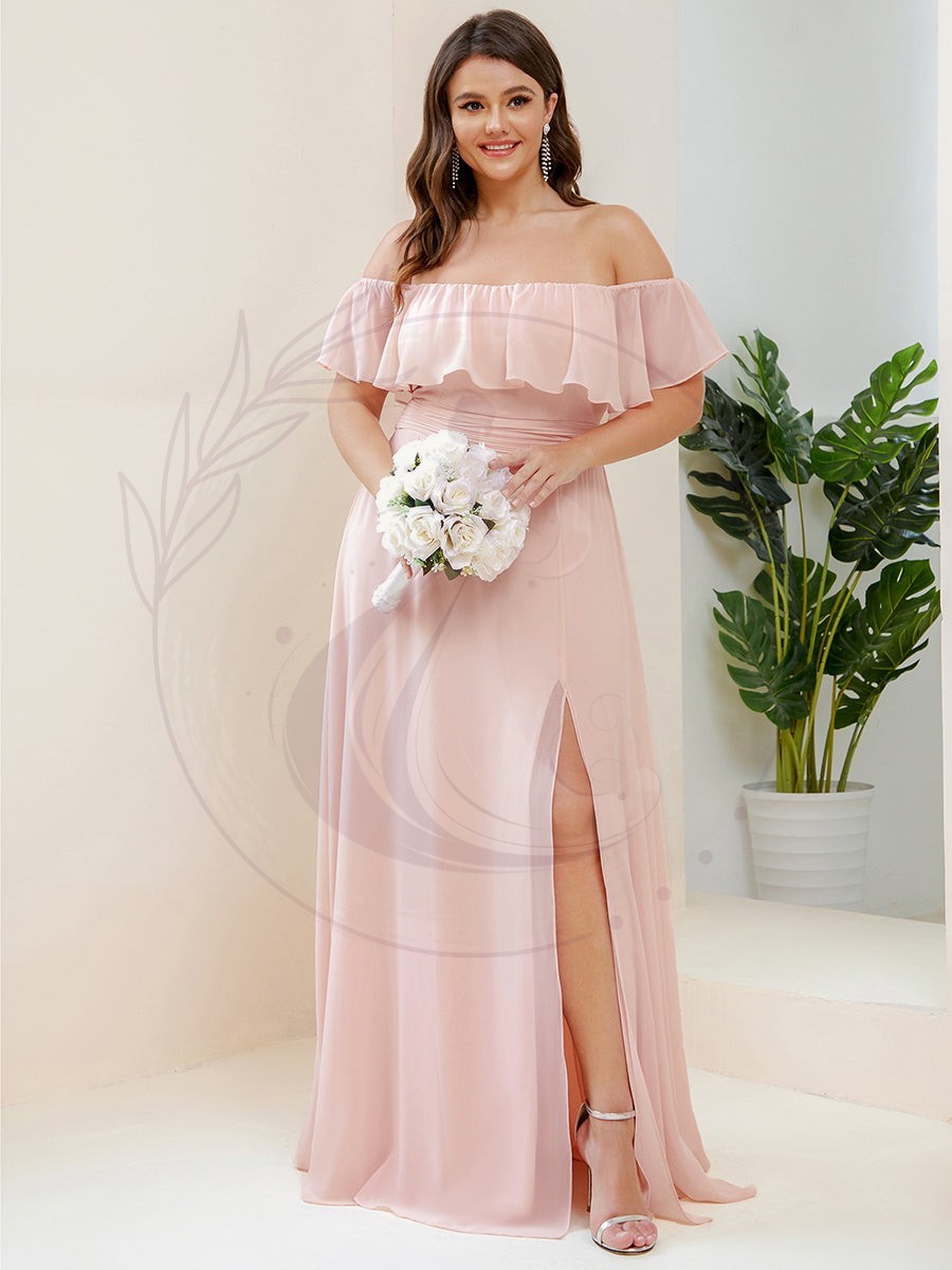 Robe de demoiselle d’honneur grande taille à volants et épaules dénudées
