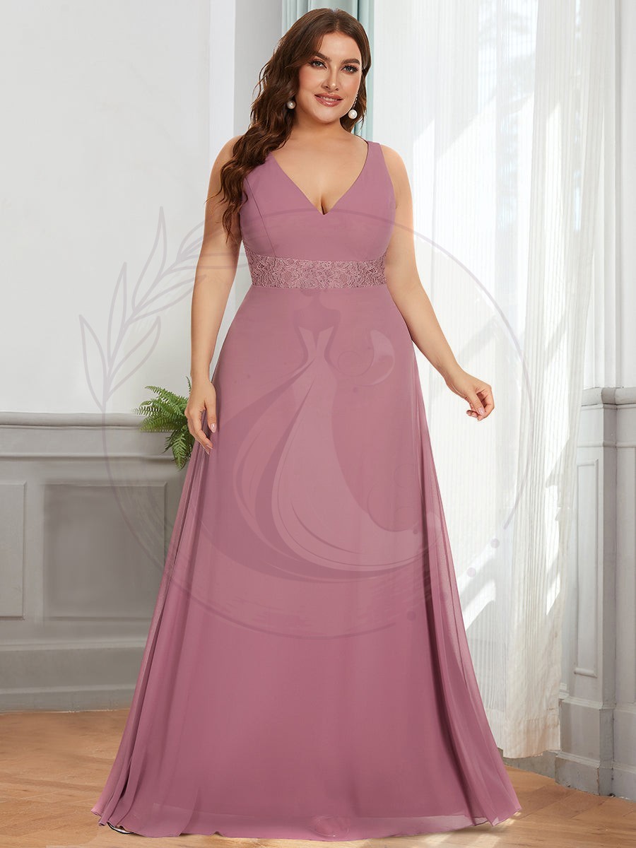 Robe de Demoiselle d’Honneur Grande Taille en Dentelle avec Trou de Serrure dans le Dos et Longueur au Sol