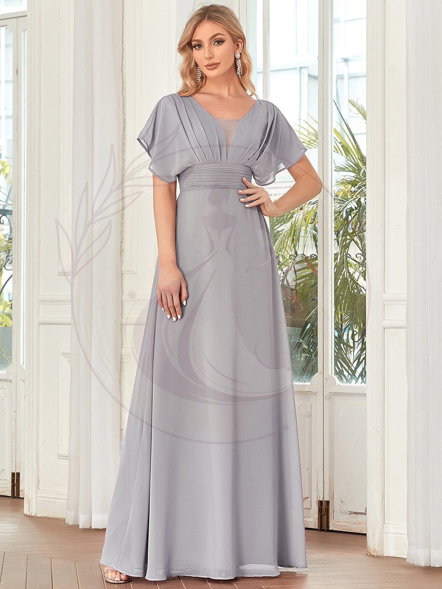 Cette magnifique robe de gala, avec son double décolleté en V, sa coupe évanescente et ses délicates manches à volants, incarne le summum de l’élégance pour toutes vos occasions distinguées telles que les cérémonies de mariage, les soirées festives, les réceptions cocktail, les bals de fin d’année, les soirées de gala, les baptêmes, la rentrée des classes ou les célébrations de remise de diplôme.