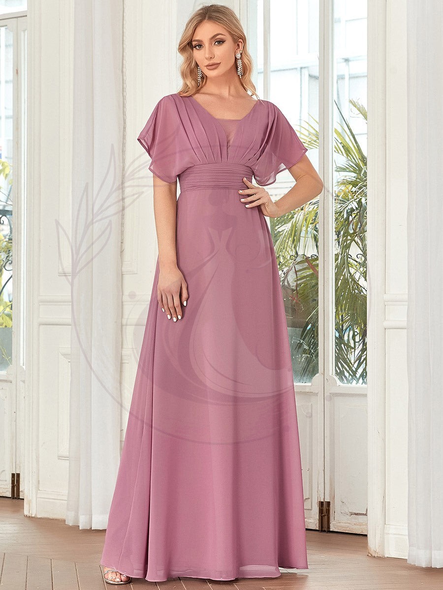 Élégante robe invitée mariage en mousseline de soie