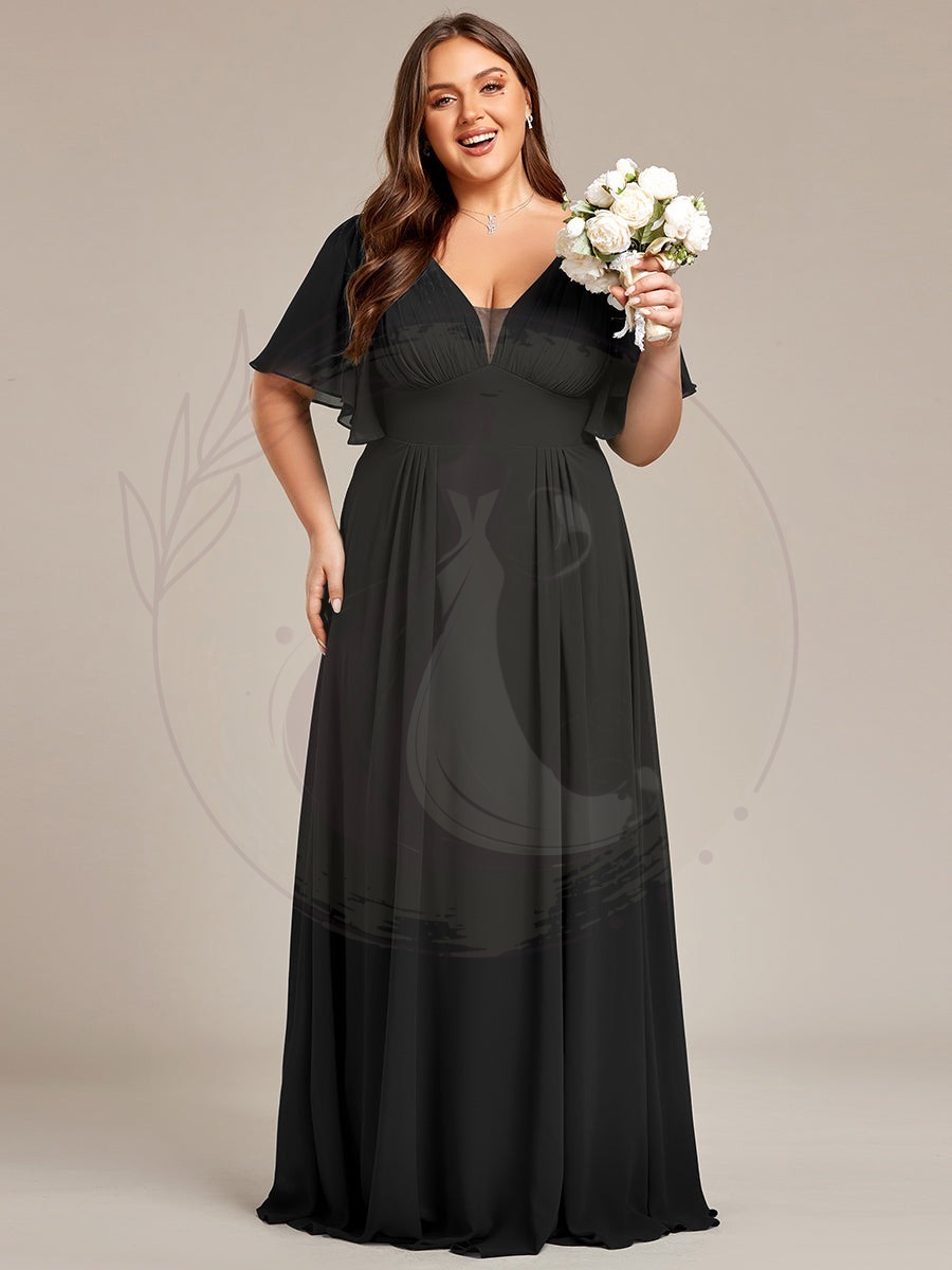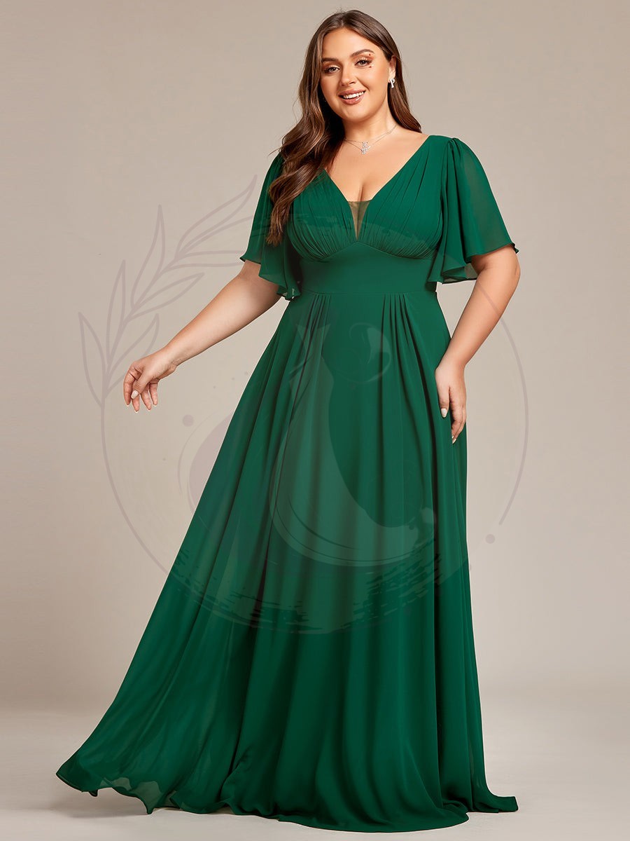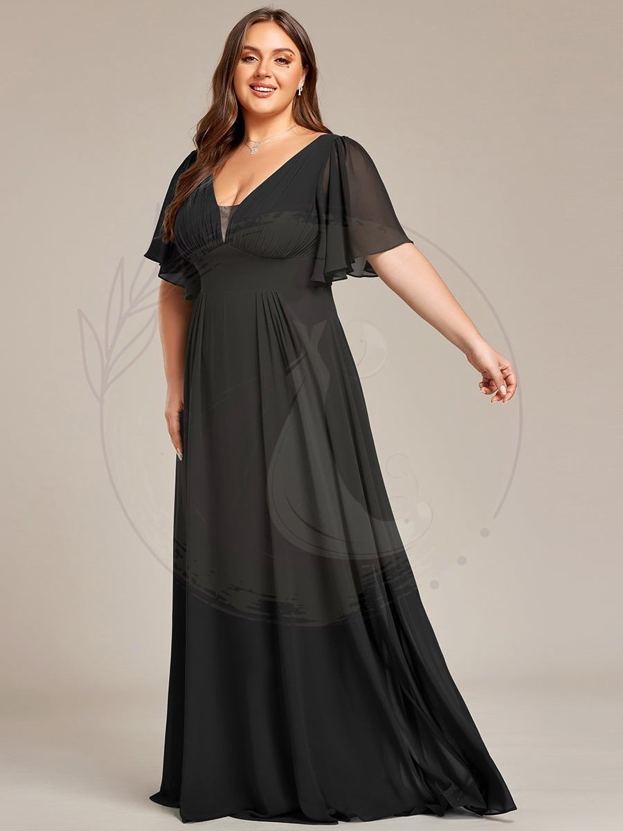 Robe de demoiselle d’honneur longue en mousseline de soie simple manches courtes taille empire ligne a grande taille