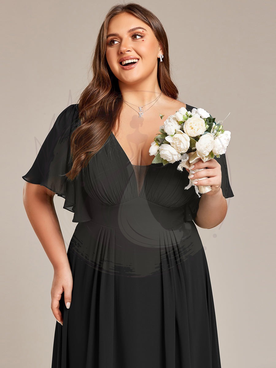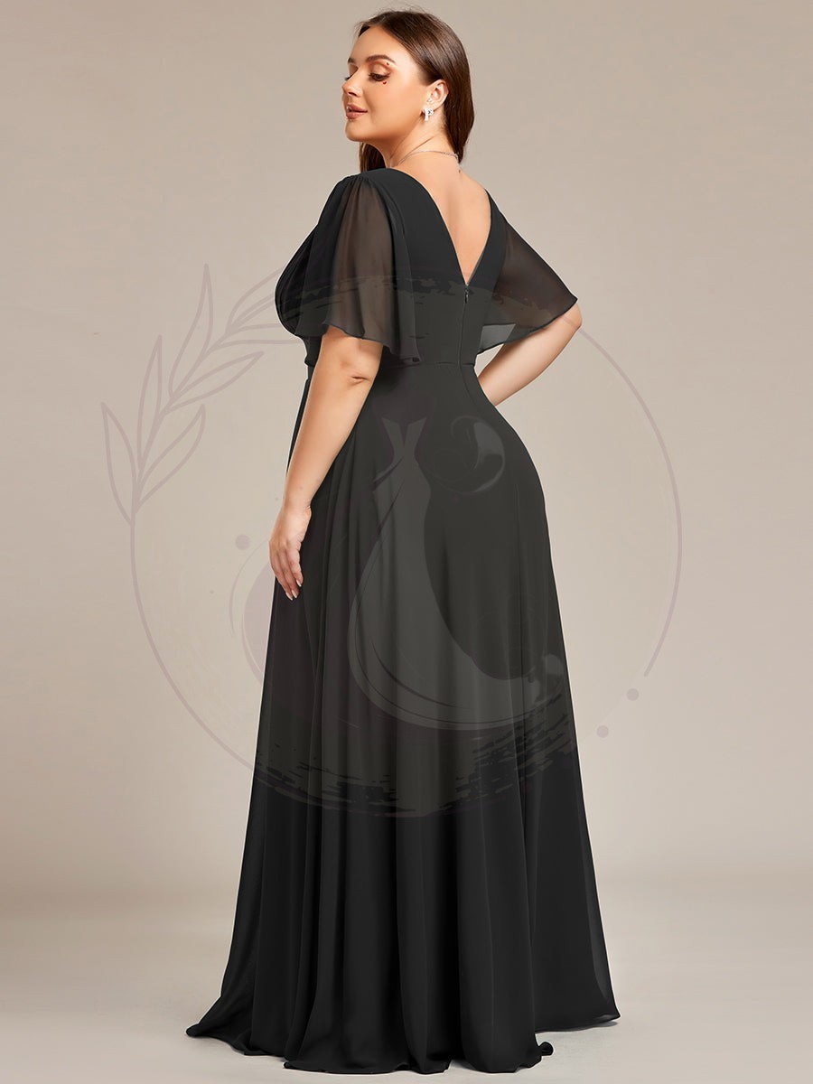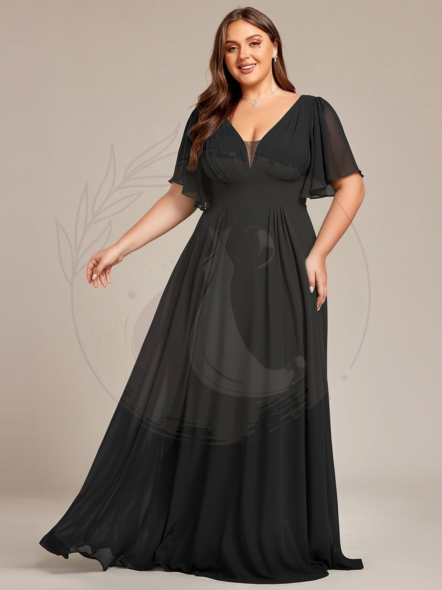 Robe de demoiselle d’honneur longue en mousseline de soie simple manches courtes taille empire ligne a grande taille