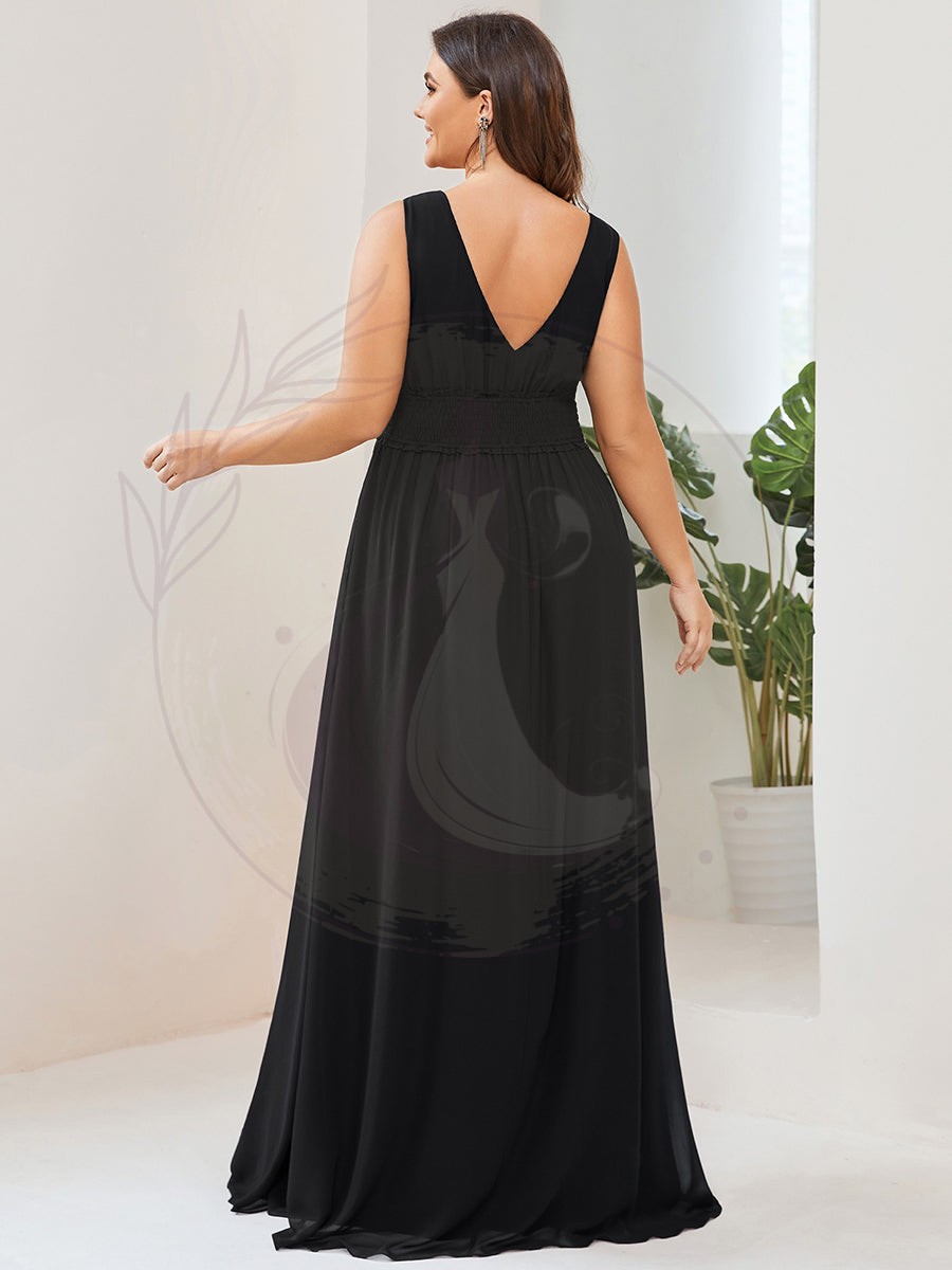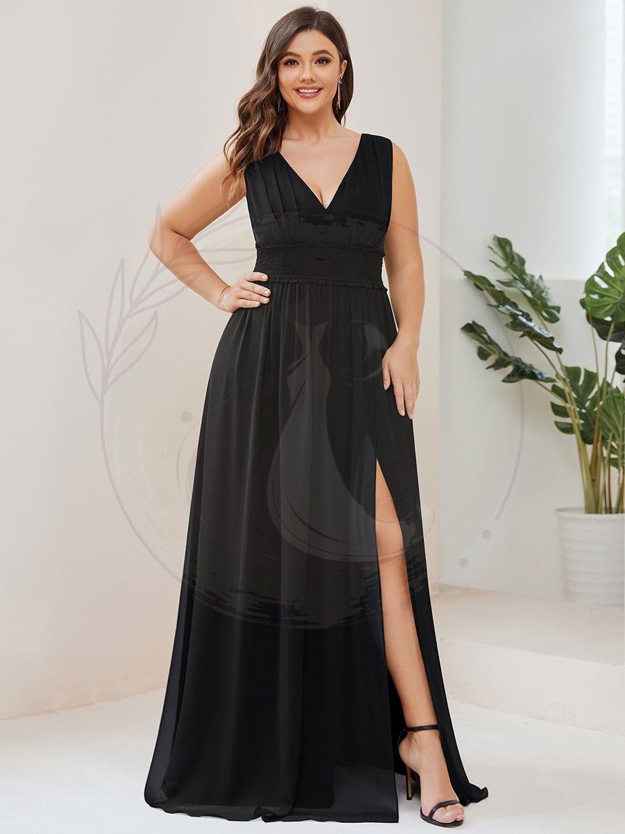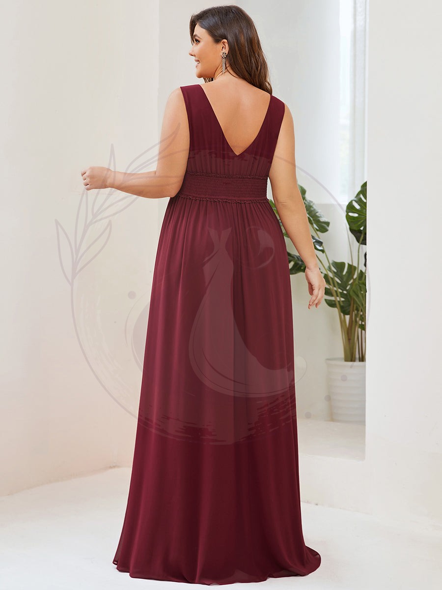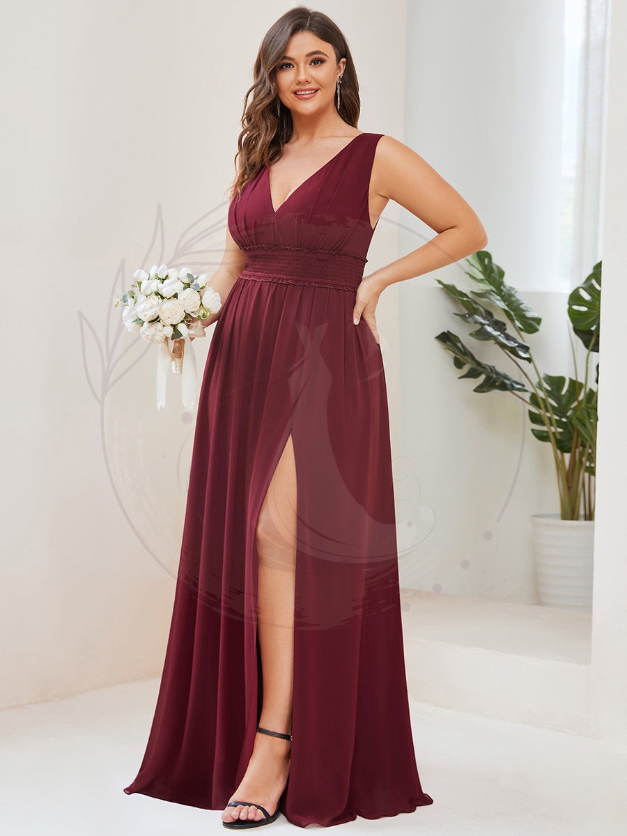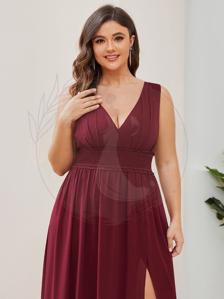 Robe de demoiselle d’honneur Mousseline plissée à encolure en V Grande taille