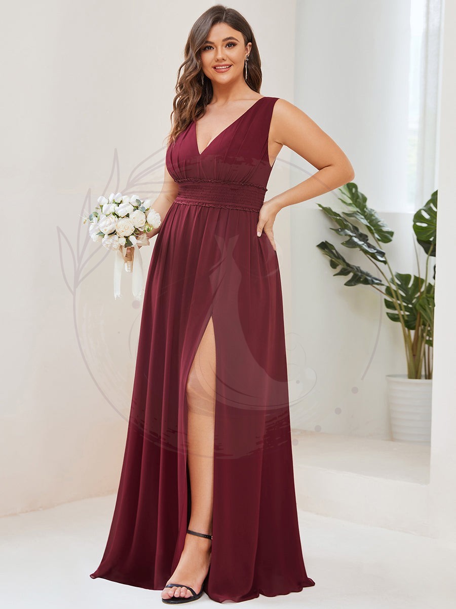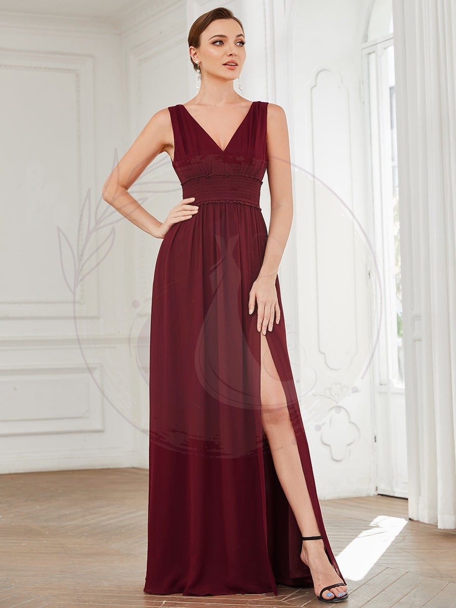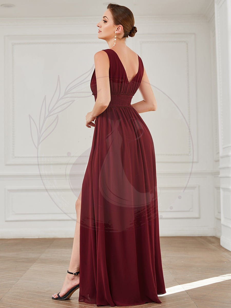 Robe de demoiselle d’honneur Mousseline plissée à encolure en V sans manches
