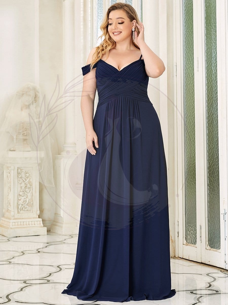 Robe de demoiselle d’honneur plissée à épaules dénudées longueur au sol grande taille