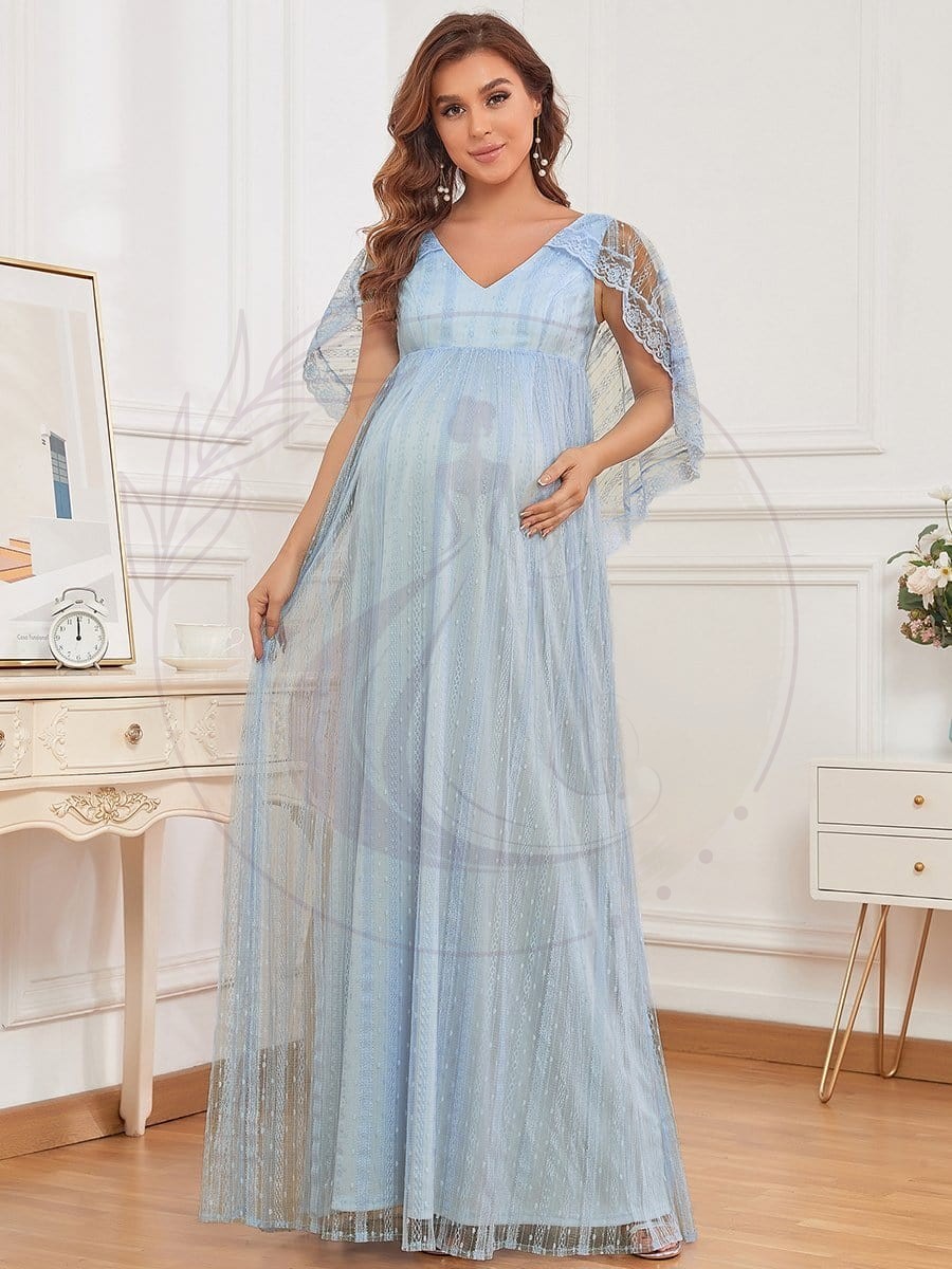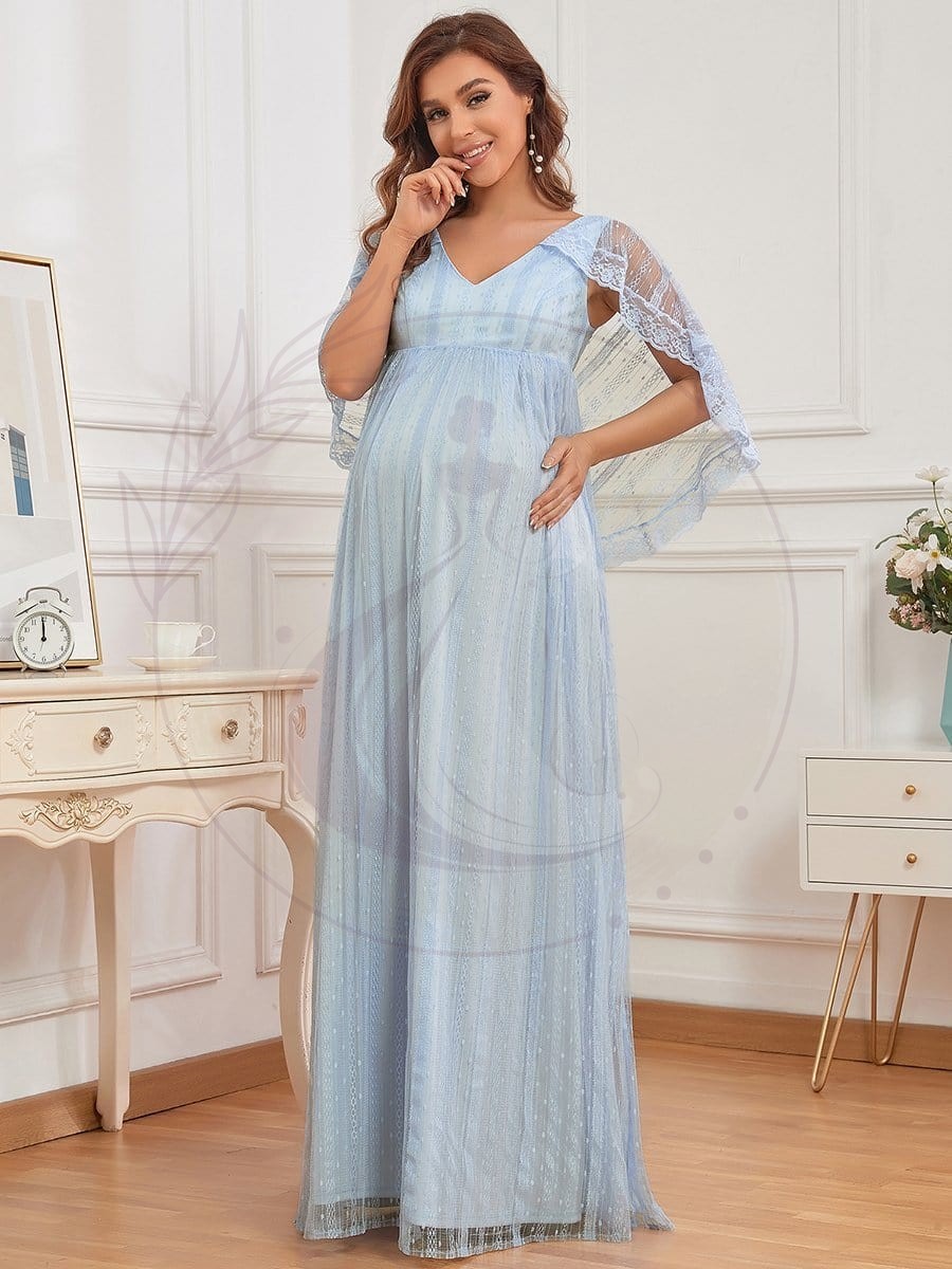 Craquez pour cette élégante robe de maternité parfaite pour vos moments festifs. Avec sa belle garniture en dentelle et capelet aerial, ainsi qu’un charmant décolleté en V, elle offre un look raffiné. La robe se dessine avec une jupe à plis fluide et évasée.
