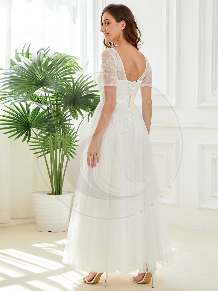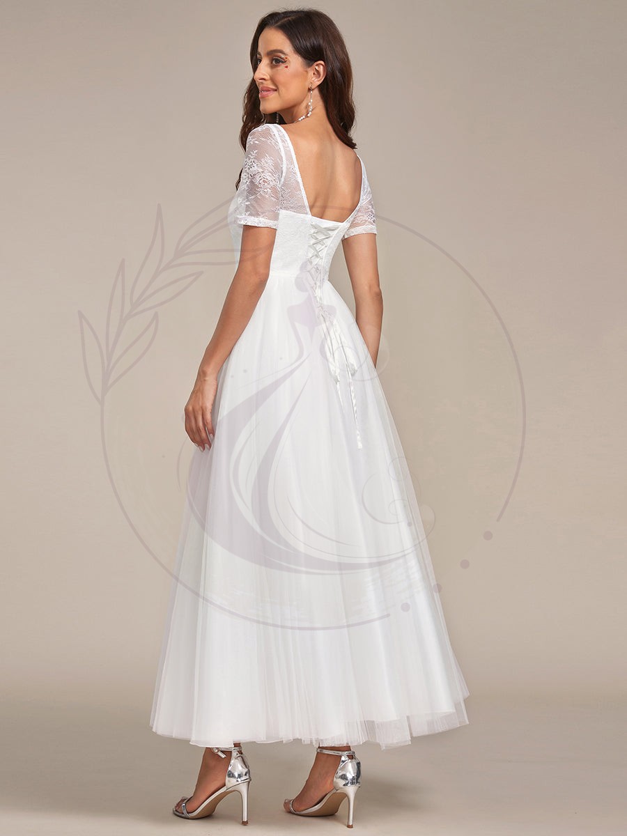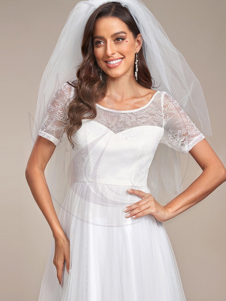 Robe de mariée A-ligne à lacets et corset à manches courtes