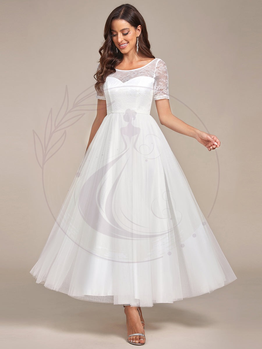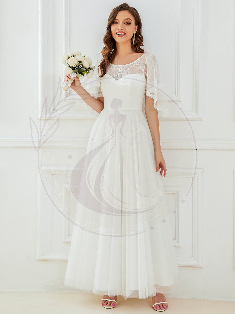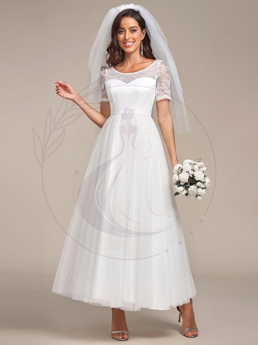Robe de mariée A-ligne à lacets et corset à manches courtes