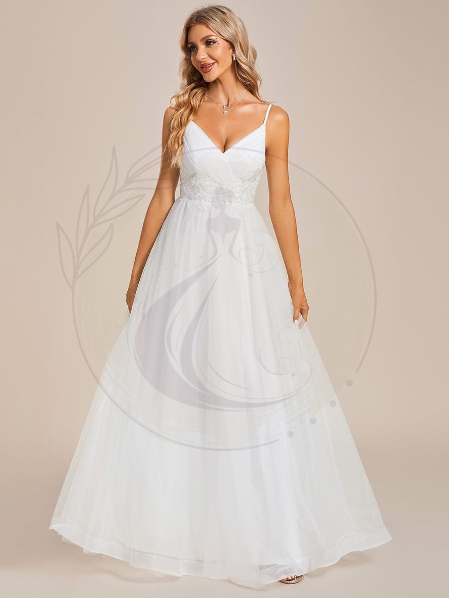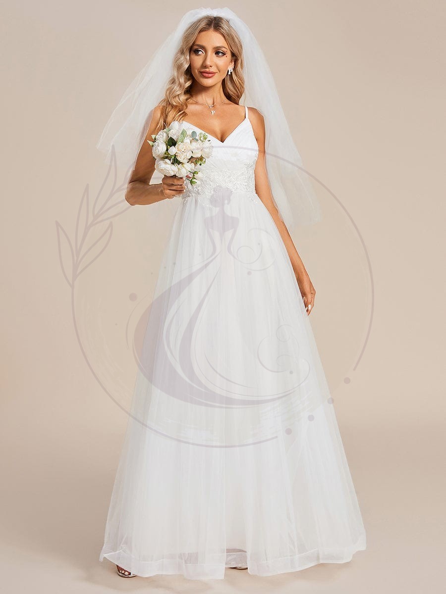 Robe de mariée Bretelles fines col en V taille appliques en tulle A-ligne