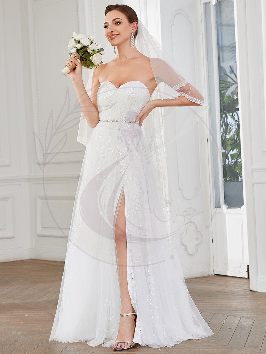 Robe de mariée fendue sur le côté sans manches en dentelle