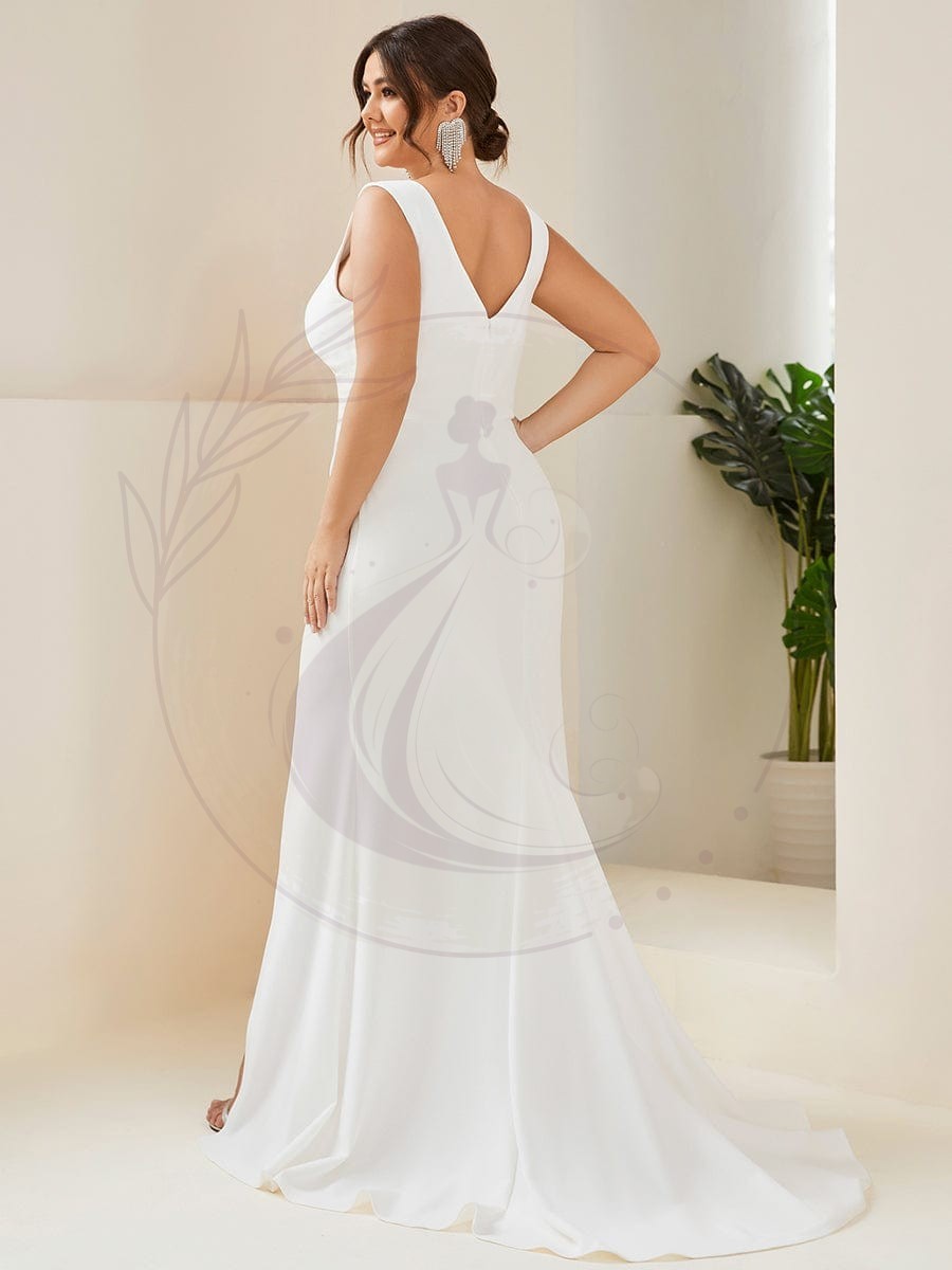 Robe de Mariée Simple Col en V Profond Grande Taille Sans Manches