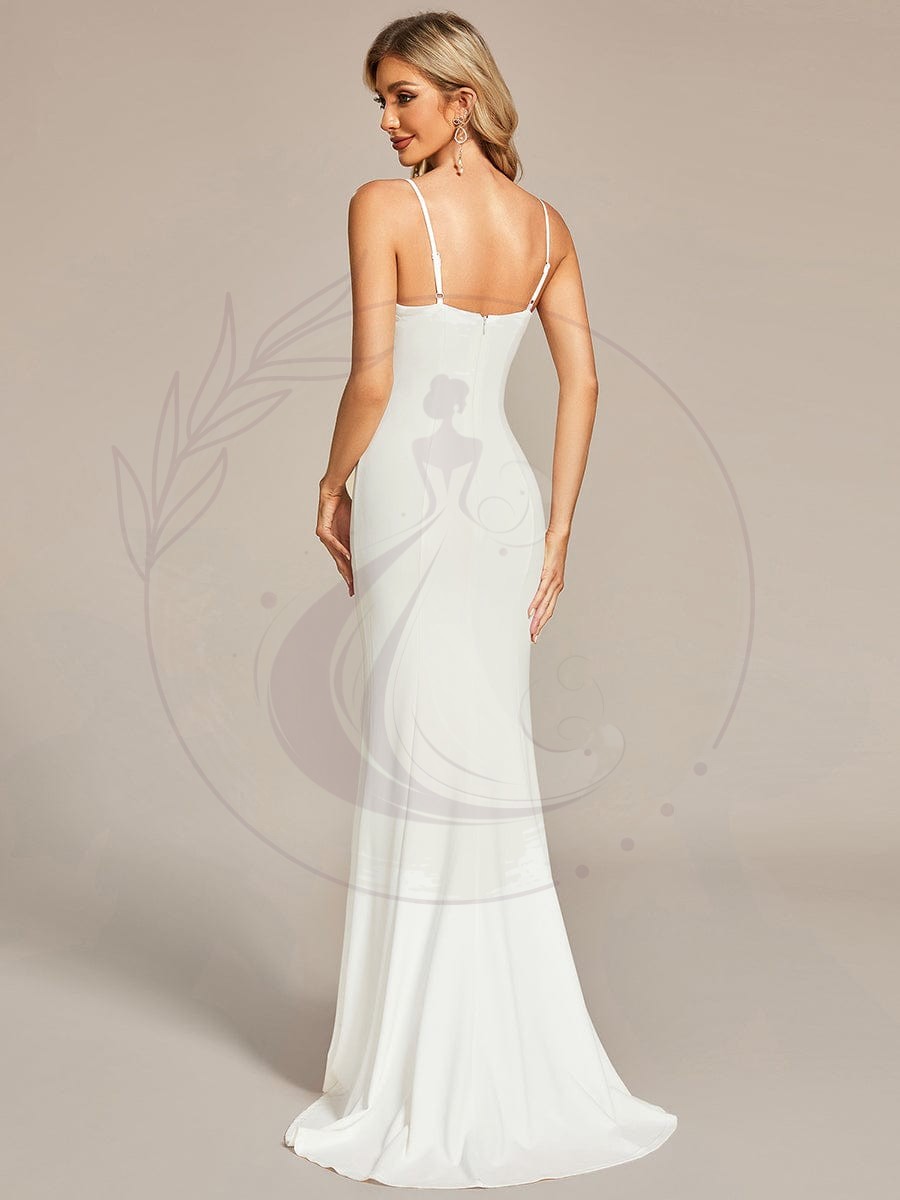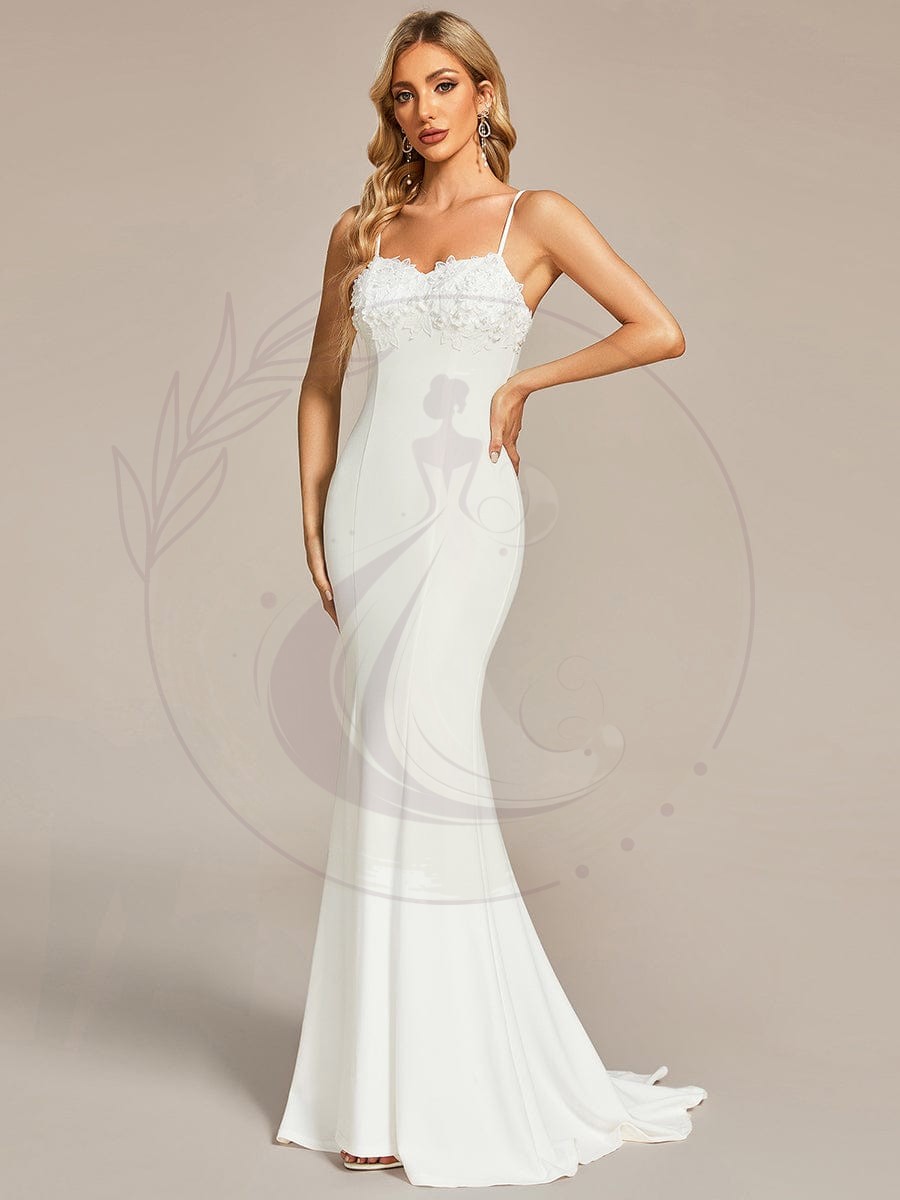 Découvrez la splendeur de cette robe de mariage avec sa coupe moulante inspirée des sirènes et son ornementation raffinée en fine dentelle. L’allure générale de cette tenue est empreinte de sobriété et d’élégance, grâce à des bretelles délicates et un bustier en forme de cœur séduisant. Les motifs de dentelle subtilement appliqués confèrent un air de romance et de délicatesse à l’ensemble, tandis que la coupe ajustée met en valeur les courbes de manière avantageuse. La traîne majestueuse, évasée telle la queue d’une sirène, apporte une touche spectaculaire et gravera ce moment dans les mémoires comme étant tout simplement magique.