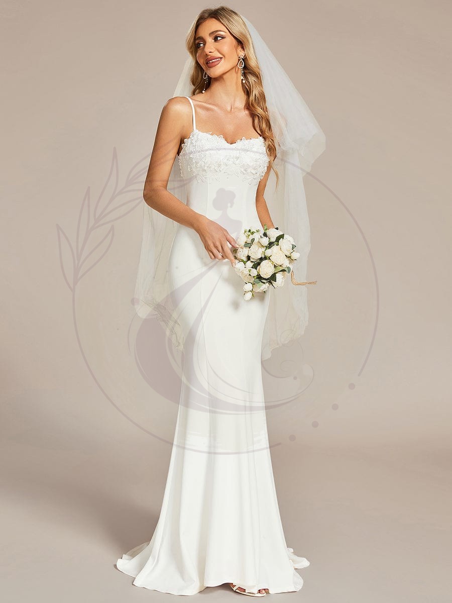 Robe de mariée sirène Élégante en dentelle avec bretelles fines