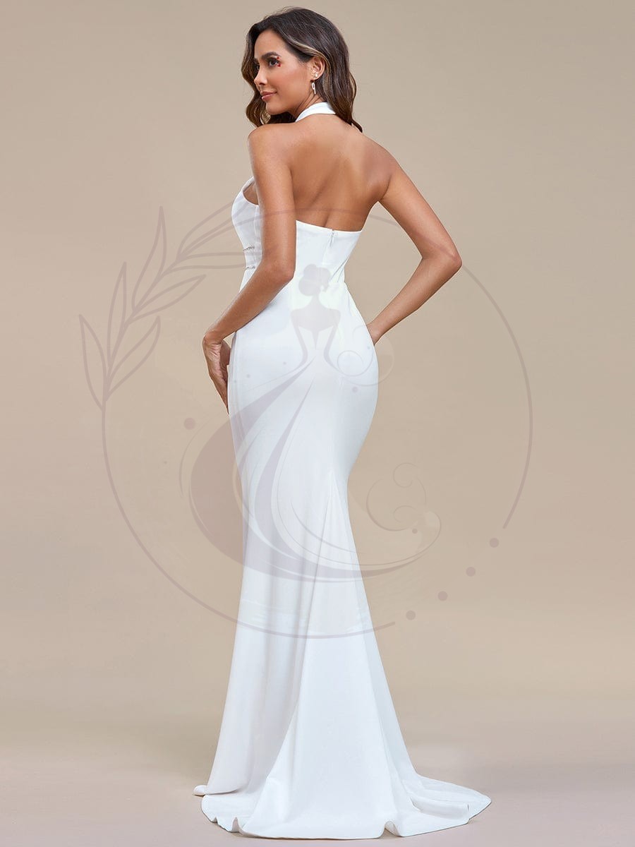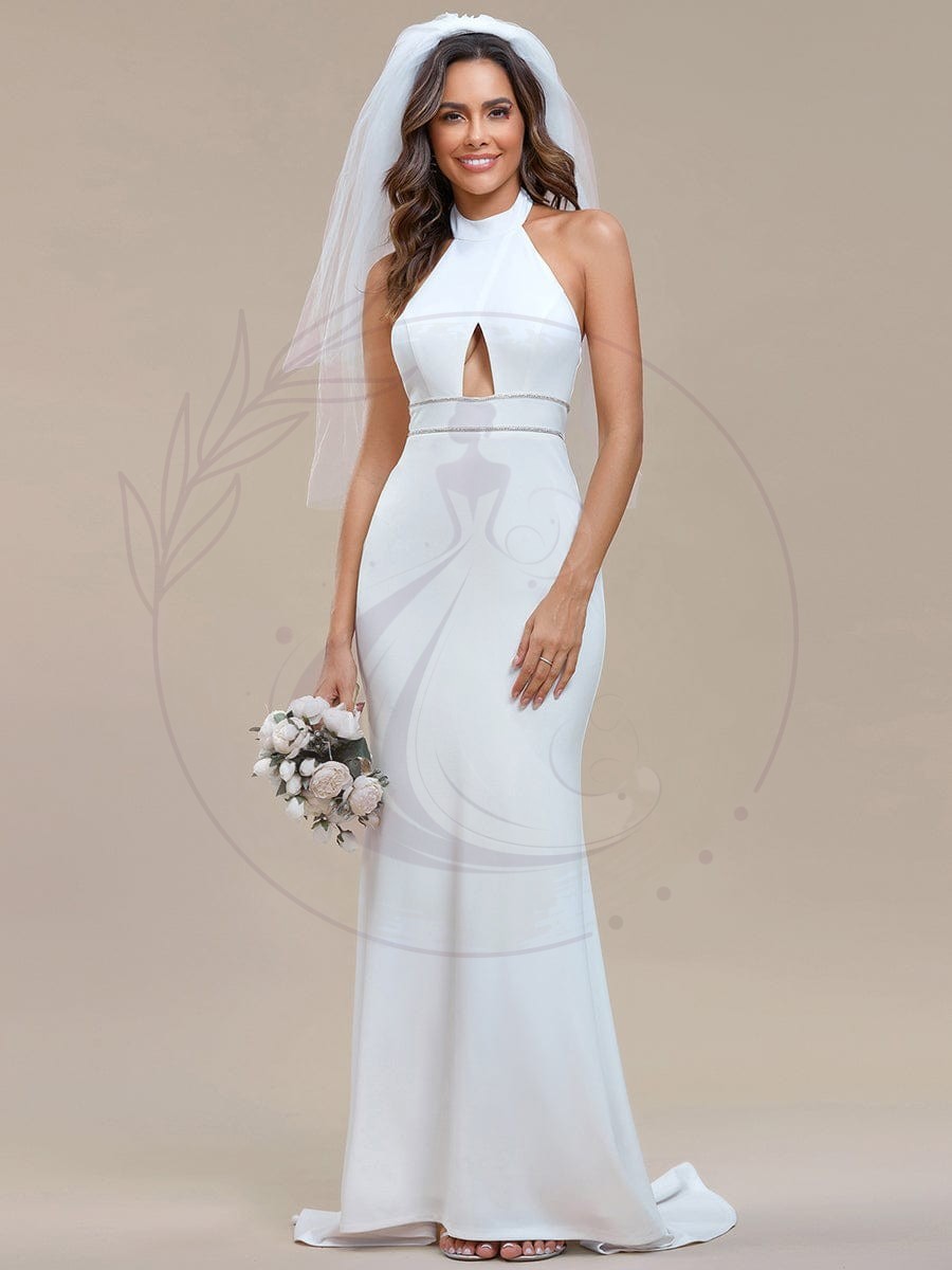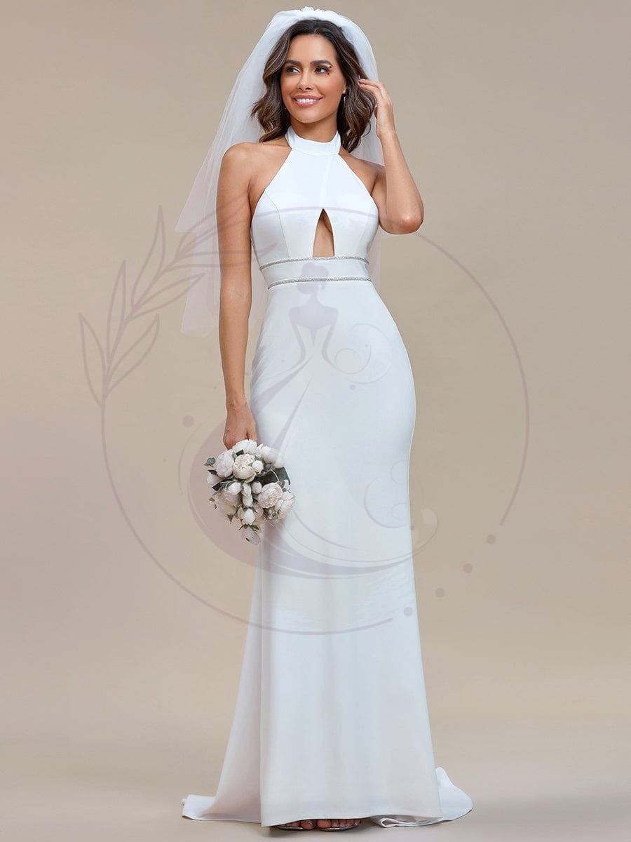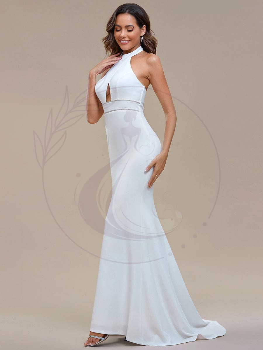 Soyez l’éclat du jour J avec notre sublime Robe de mariée style sirène à halter neck et emmanchures ajourées. Avec son dos nu séduisant et son design affinant, cette tenue épouse parfaitement vos formes pour un rendu des plus élégants. Idéale pour un évènement majestueux en salle ou une cérémonie romantique sur la plage, elle vous garantit une apparition resplendissante, soulignant votre allure distinctive et captivant l’admiration des invités.