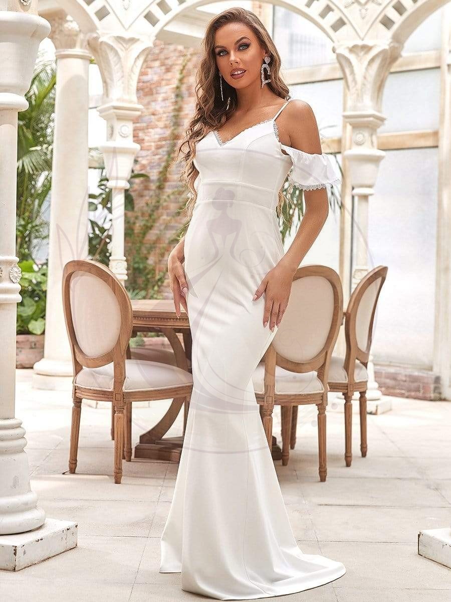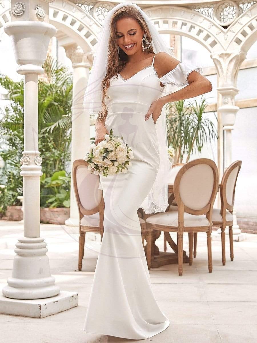 Robe de mariée sirène sexy à col en V et épaules dénudées