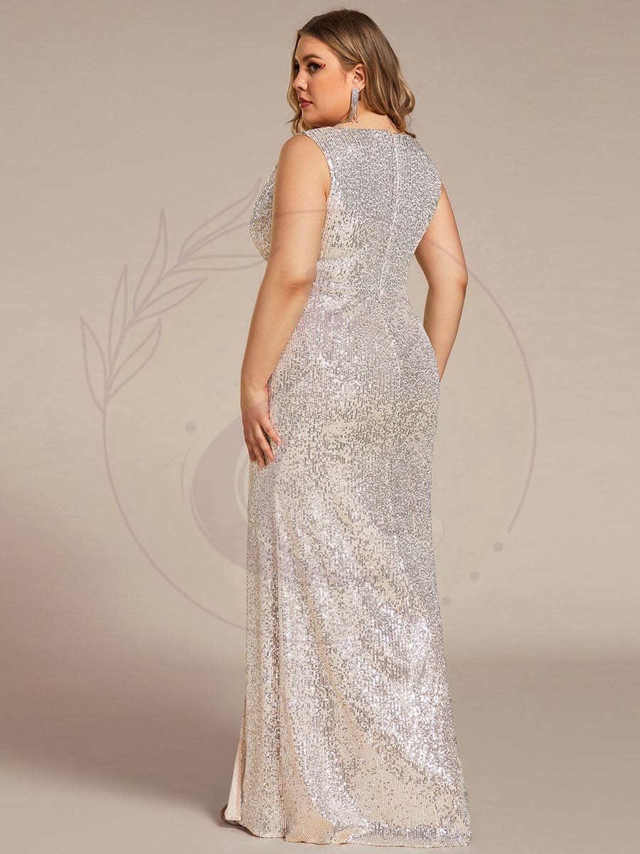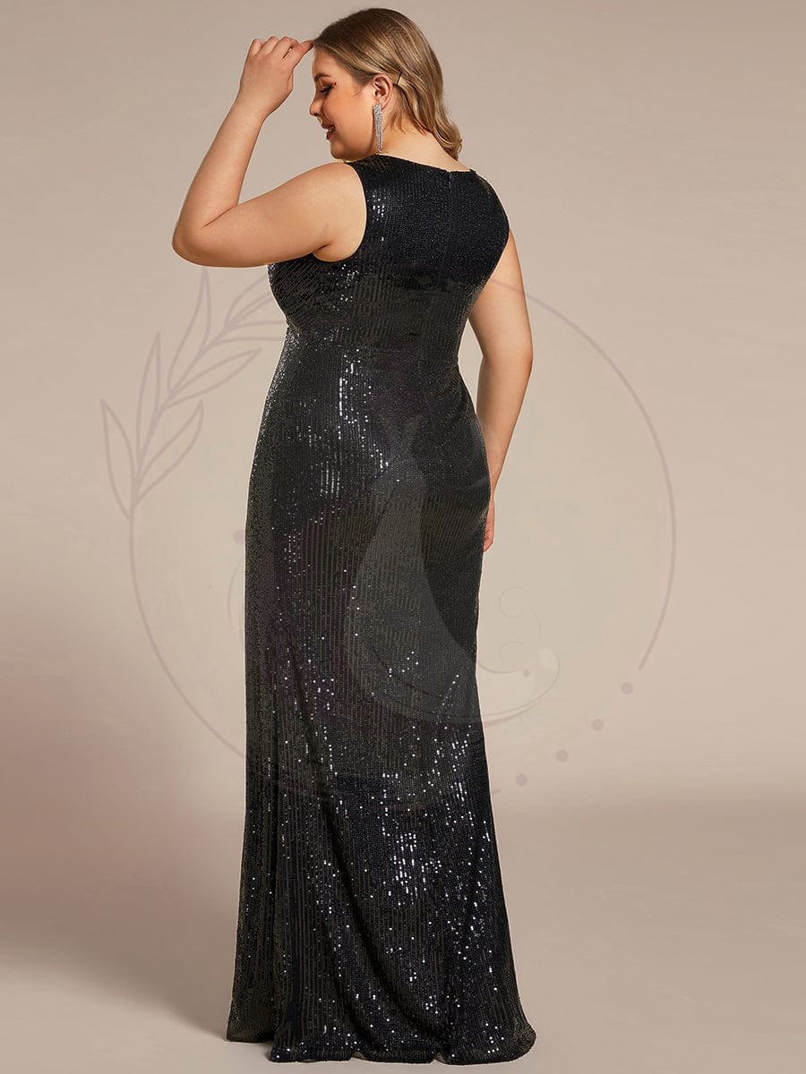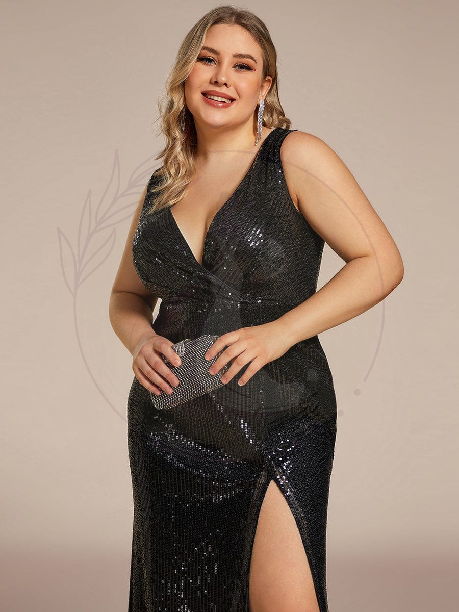 Robe de soirée à col en V profond à sequins scintillante de grande taille