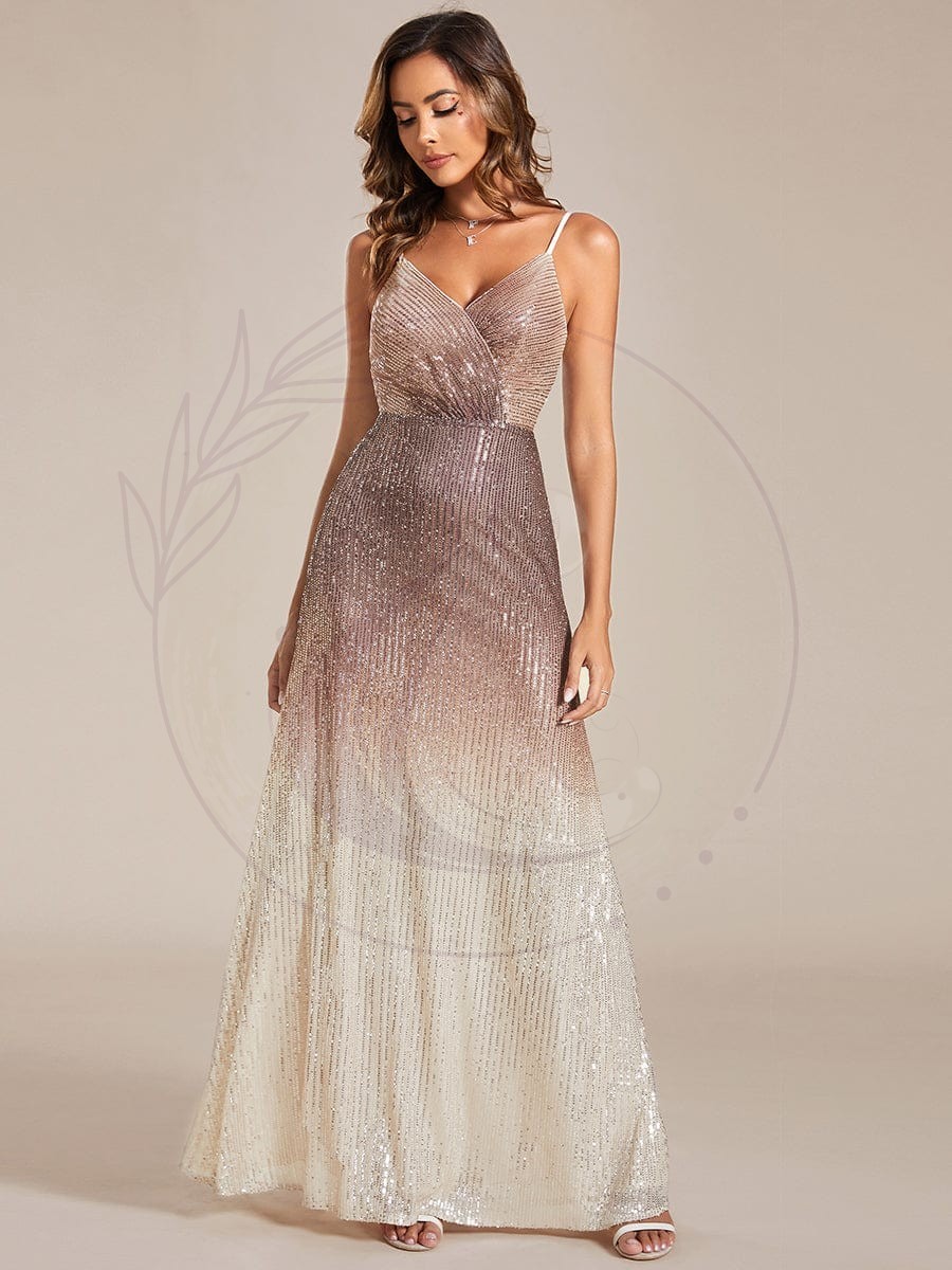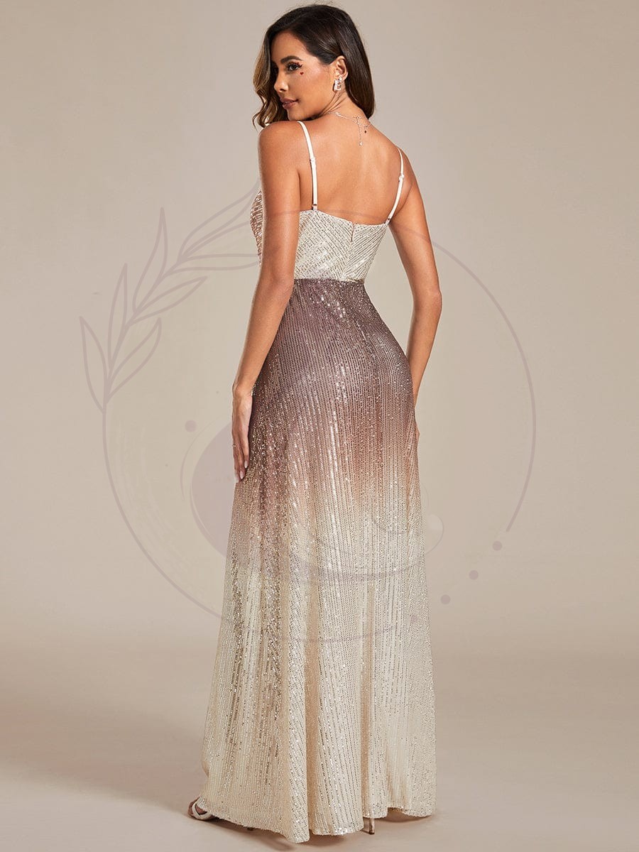 Robe de soirée à encolure en V Bretelles fines à sequins dégradés