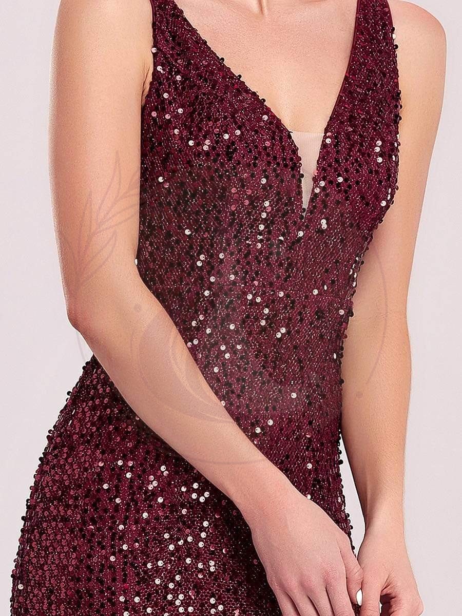 Sublimez votre allure pour tout événement exceptionnel avec cette magnifique robe de soirée étincelante! Agrémentée d’une myriade de paillettes brillantes, elle présente un décolleté en V séduisant avec un insert illusion en tissu transparent et se prolonge vers une robe longue dotée d’une sexy fente latérale au niveau de la cuisse.
