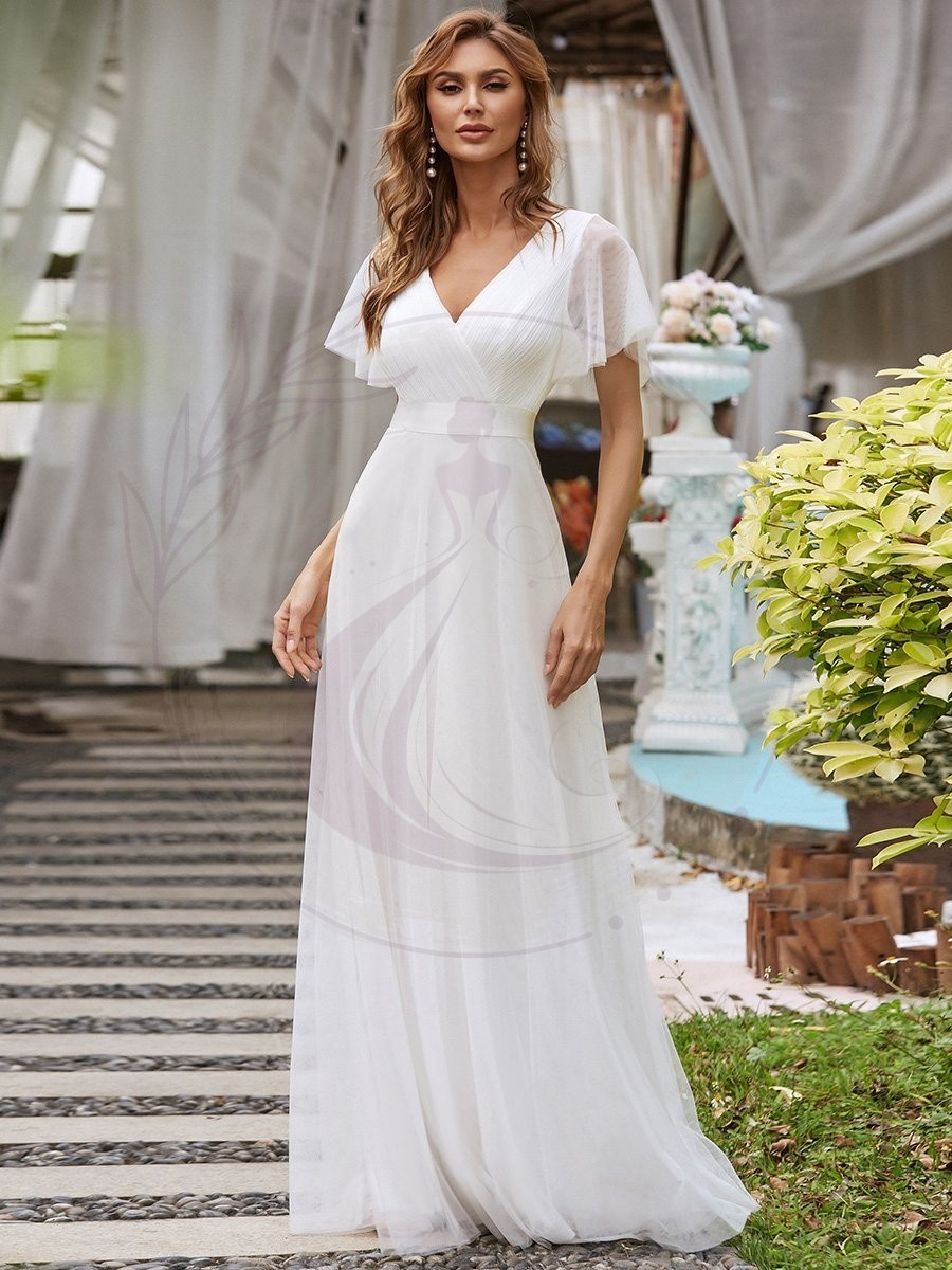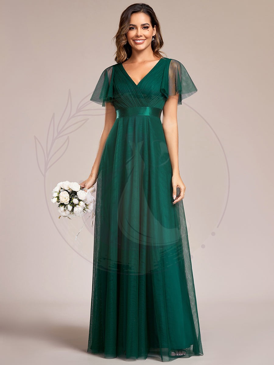 Cette robe de Soirée romantique présente un décolleté en V profond, des manches papillon à taille empire et un ourlet subtil en tulle.Elle convient à la plupart des types de corps. Nous pensons que cette robe de soirée élégante est parfaite pour toutes les occasions formelles, qu’il s’agisse d’une soirée, d’un cocktail, d’un mariage, d’un bal de fin d’année ou d’une remise de diplômes !